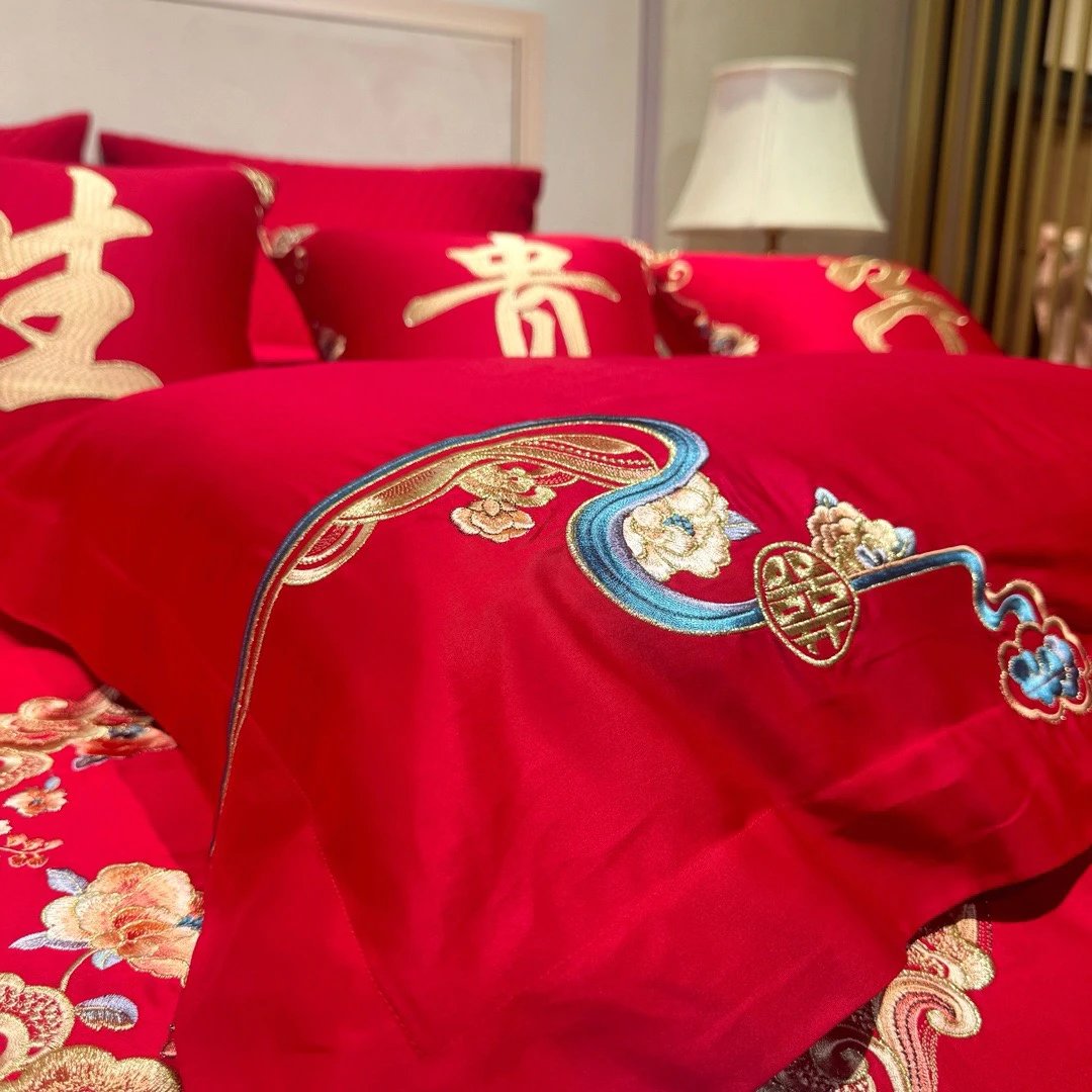 【高端婚庆】五彩缤纷 80支新疆长绒棉 婚礼四件套 吉祥美满