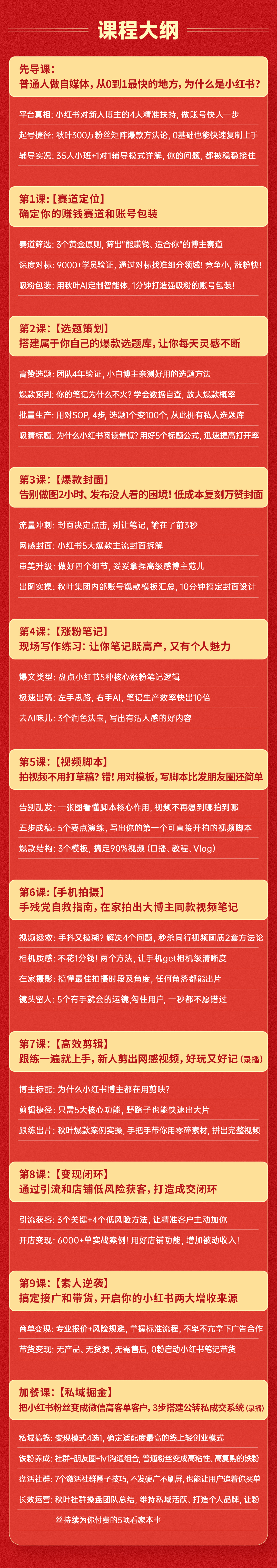 - 【秋叶精品课】是秋叶系列公众号的落地承接端,包含秋叶系列免费资料、图书、网课、训练营等服务内容和知识付费产品。