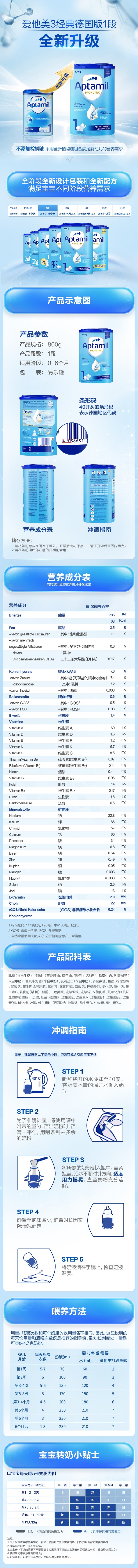 【品牌直供】德国Aptamil爱他美经典版婴儿配方奶粉 1段 0-6月龄 800g