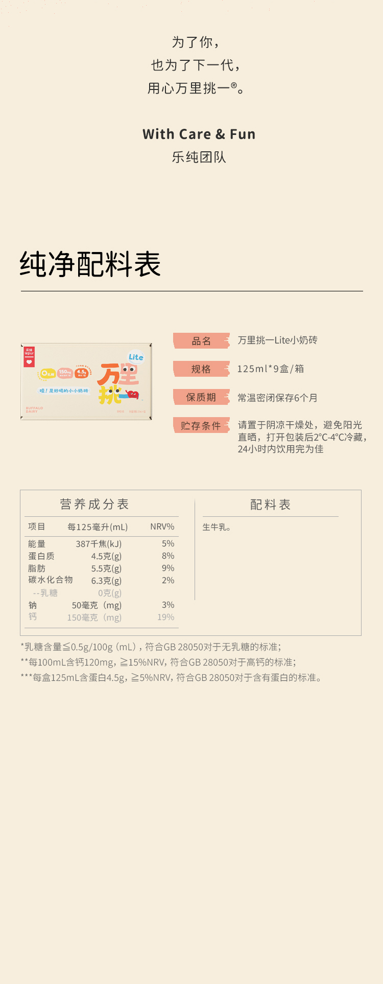 乐纯 万里挑一水牛奶3.6蛋白轻盈版(0乳糖)125ml*9/125ml*9*3