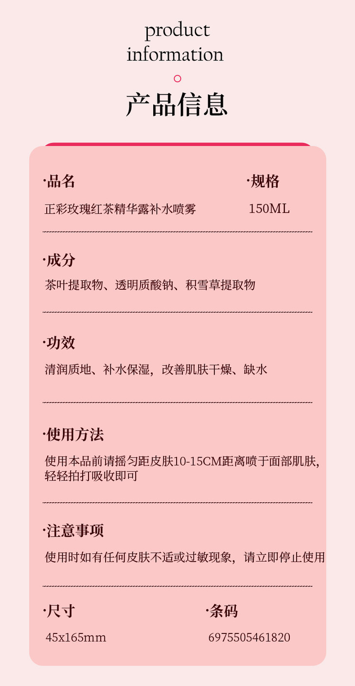玫瑰红茶补水喷雾水精华露爽肤水补水保湿夏季护肤品喷雾 150ml
