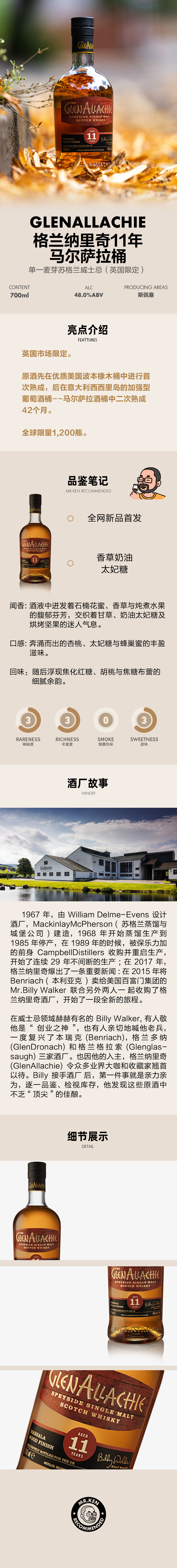 格兰纳里奇(Glenallachie)11年马尔萨拉桶单一麦芽苏格兰威士忌(英国限定)赠12年与10年限量款分享瓶