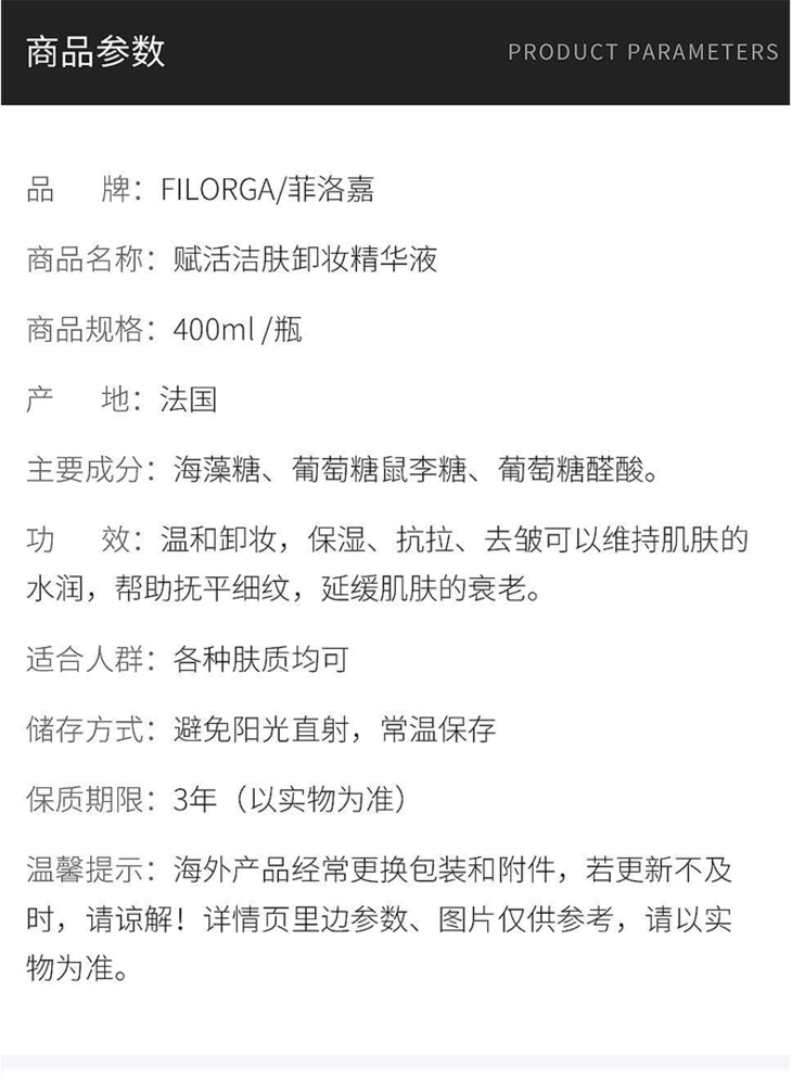 【荷兰直邮】Filorga菲洛嘉法国进口赋活洁肤卸妆水精华液眼脸部温和深层清洁400ml