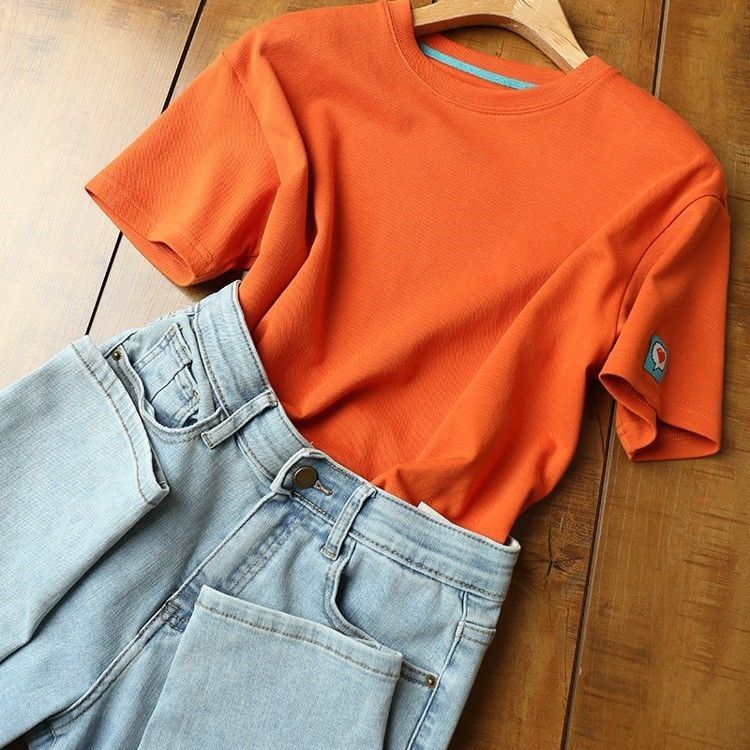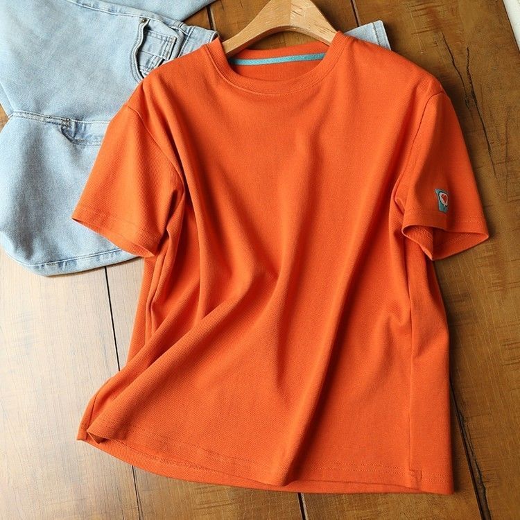 黛唯梵法式别致小众超好看上衣气质轻奢宽松橙色短袖t恤女夏薄款潮国庆出游