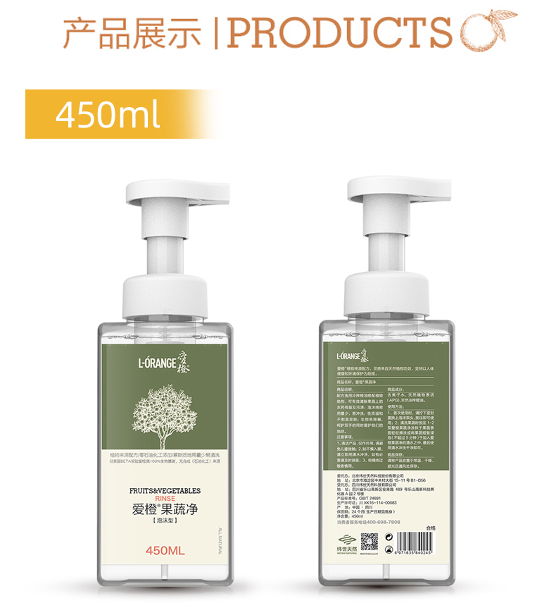 爱橙餐具净450ml+爱橙果蔬净200ml