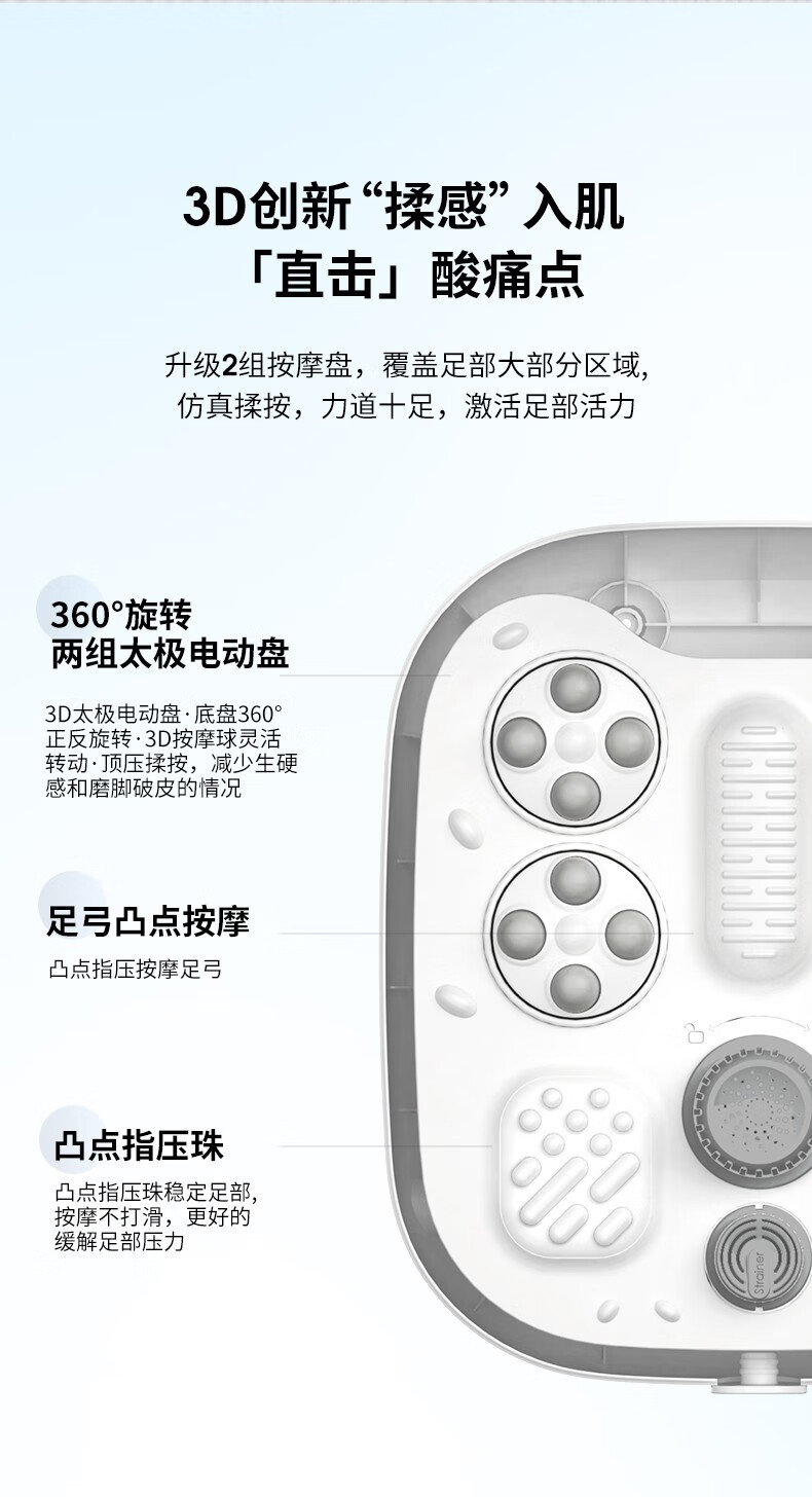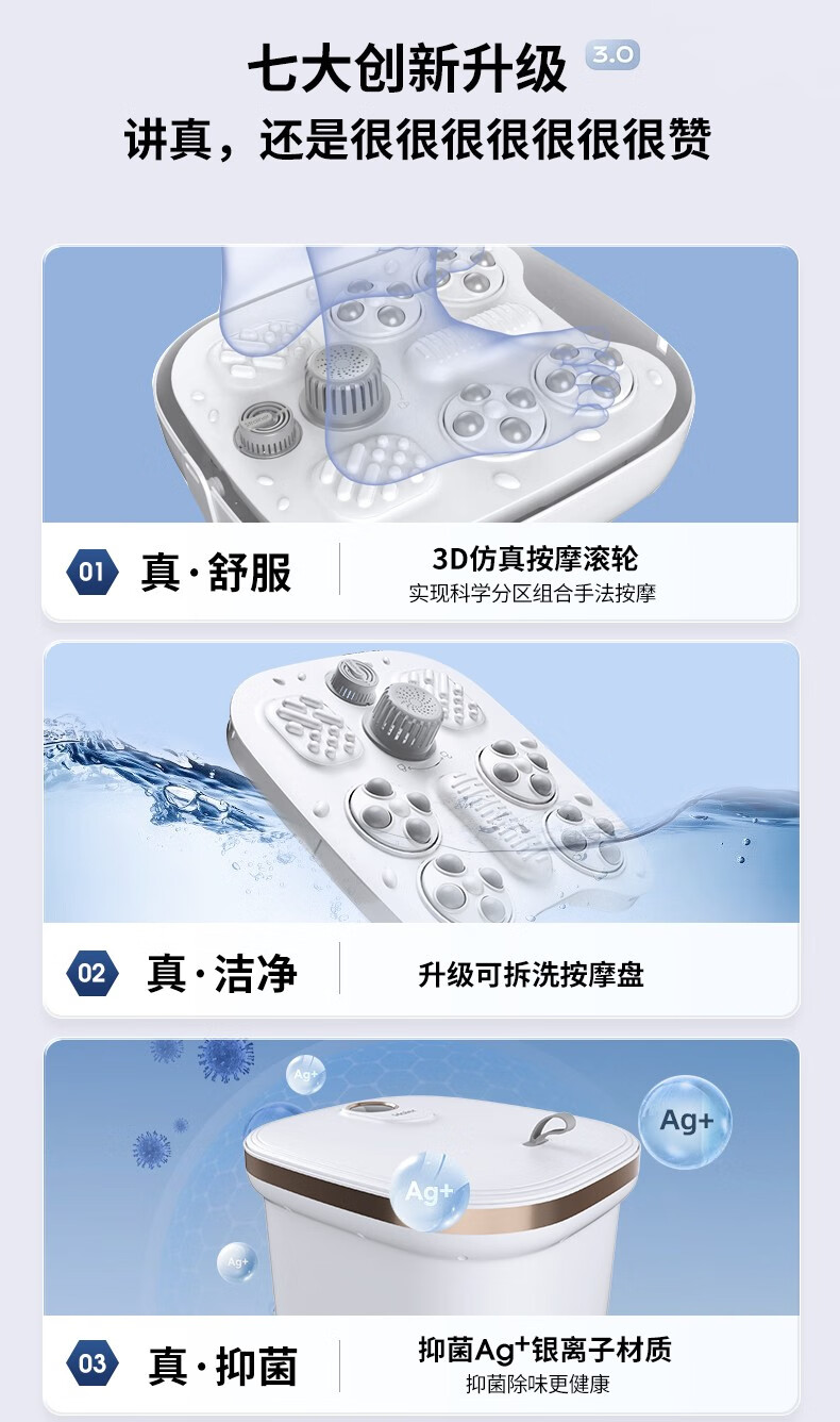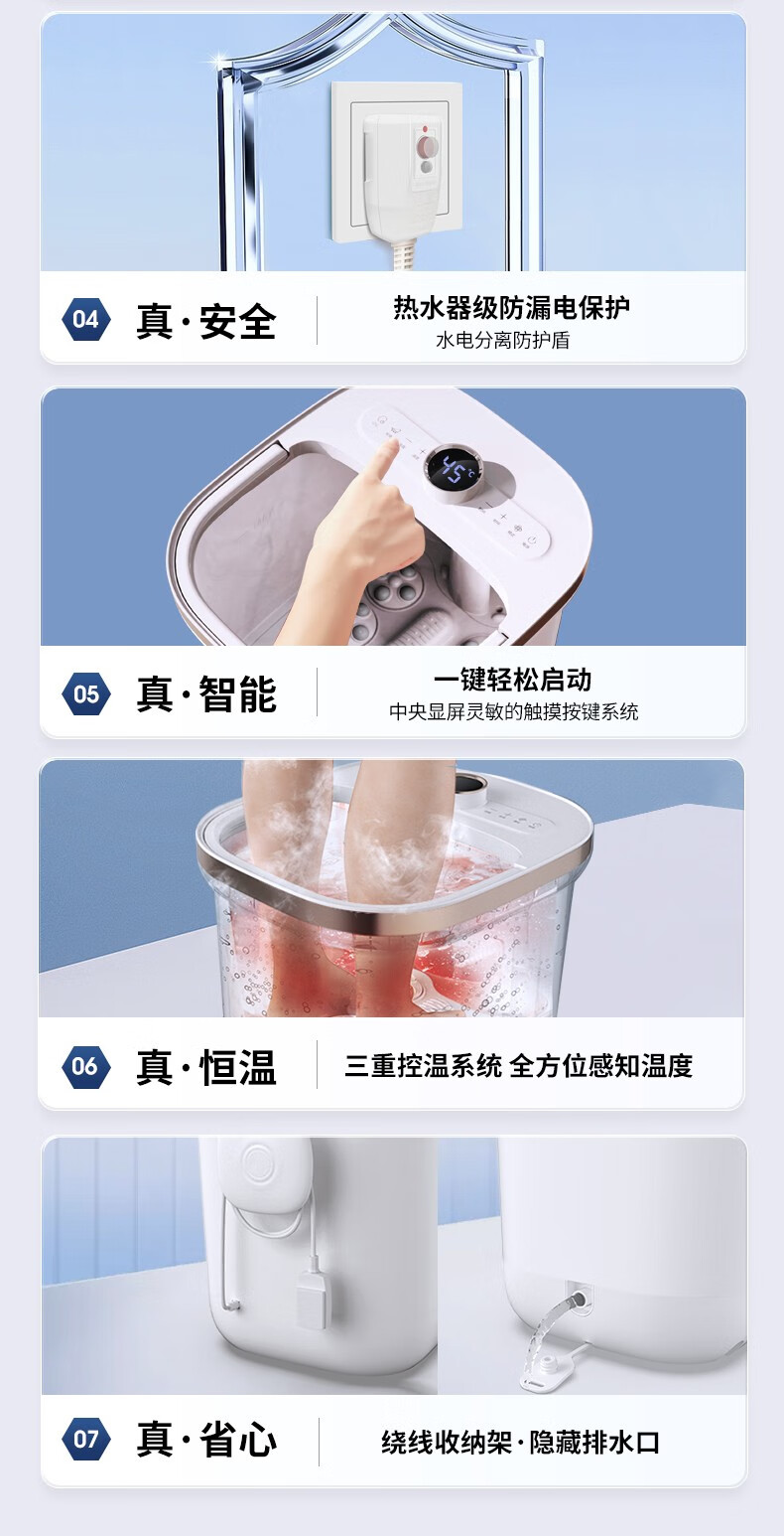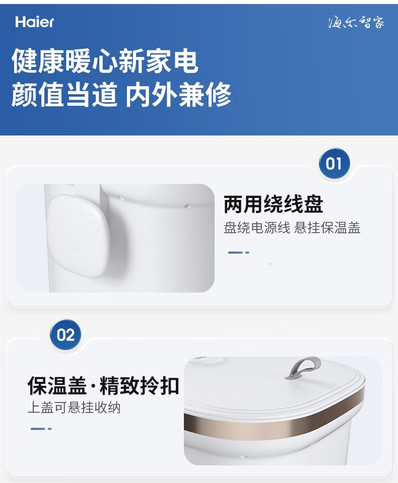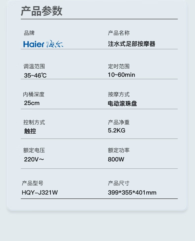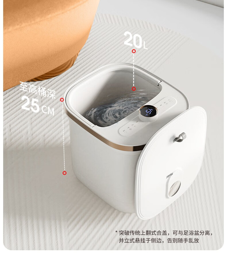 海尔泡脚桶足浴盆 全自动按摩洗脚盆 电动足浴桶恒温加热可拆卸按摩盘 高深桶HQY-J321W 【旗舰款】安全防漏电+自动按摩+银离子除味+可拆洗