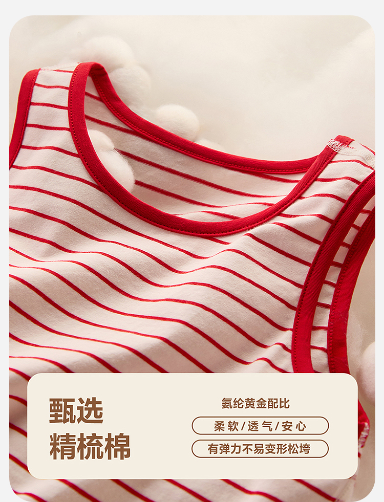 【新年红款】迷你巴拉儿童背心男童宝宝条纹打底衣透气柔软2件