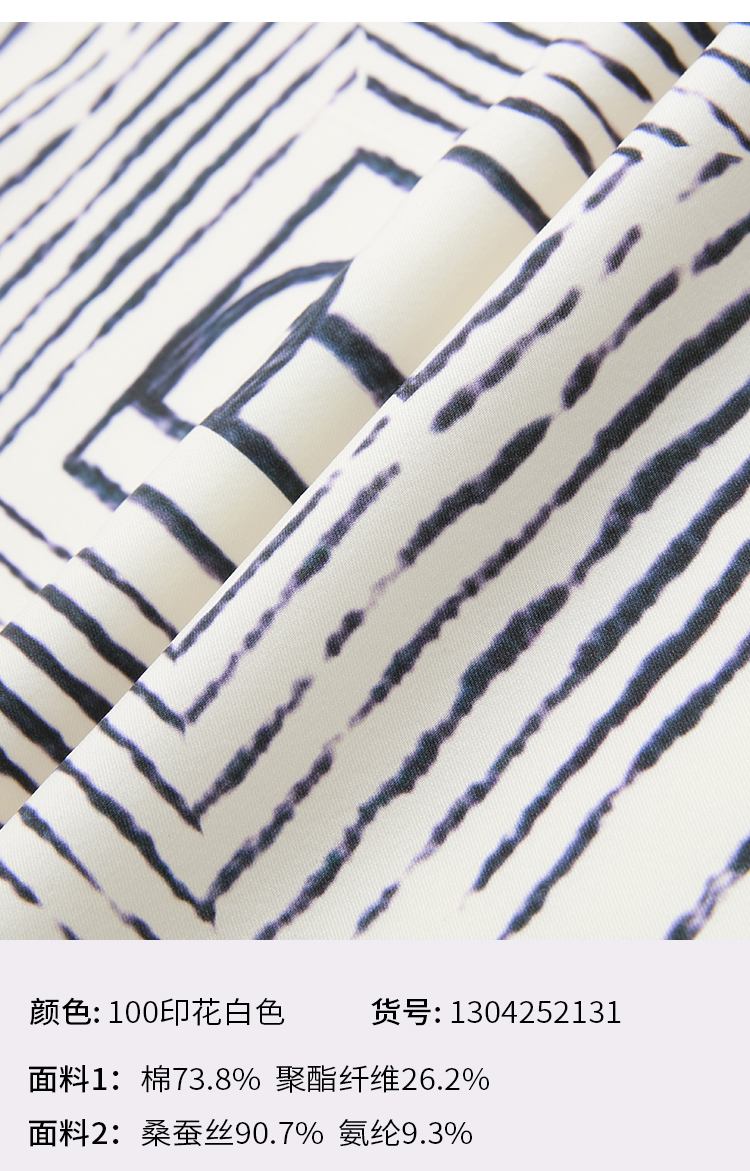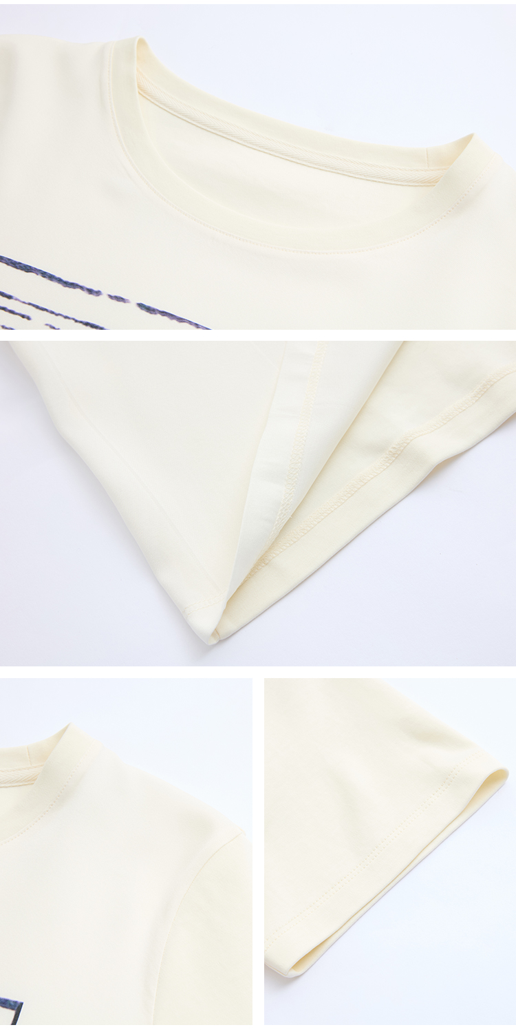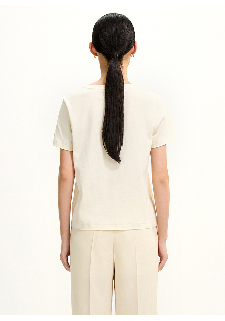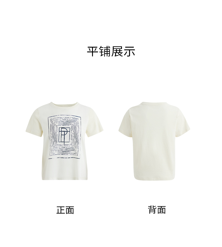 PURE TOUCH米白色简约几何图案圆领T恤 1304252131