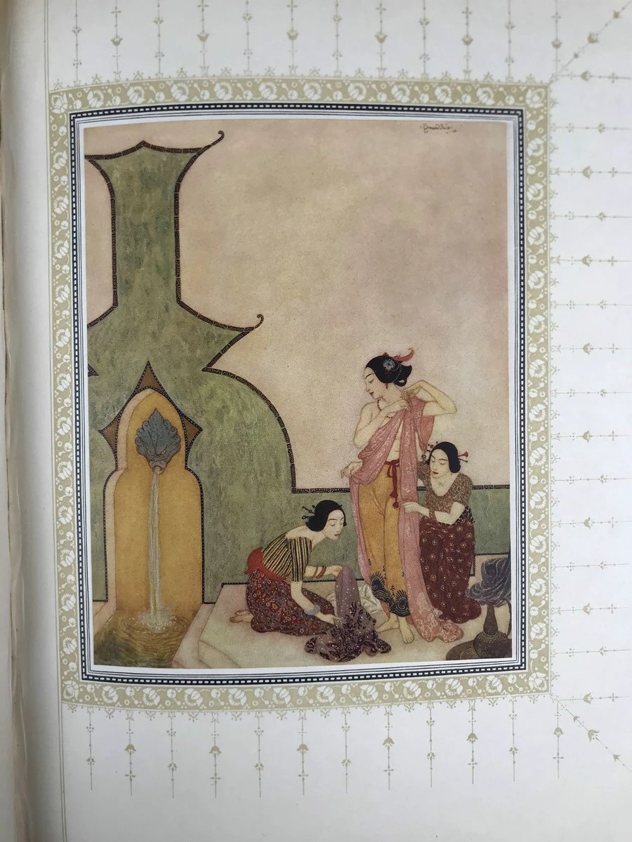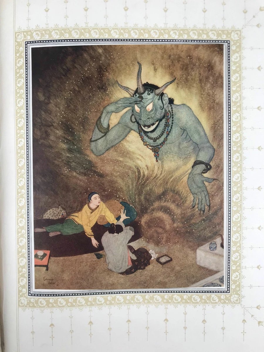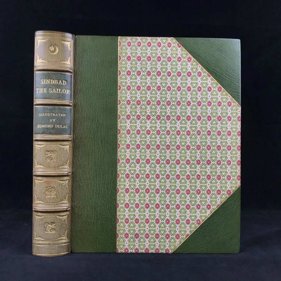 限量杜拉克签名版!桑格斯基工坊特装本!(编号11) 约20世纪早期 辛巴达航海记与其他天方夜谭故事集 约22幅彩色手工贴图 全犊皮(vellum)精装大16开