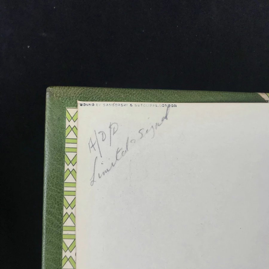 本书为著名工坊桑格斯基和萨特克利夫工坊的特装本图书,蝴蝶页背面有工坊标示。全真皮精装,五层竹节背,书脊烫金压花,上书口刷金,除书角磨损外品项基本完好。