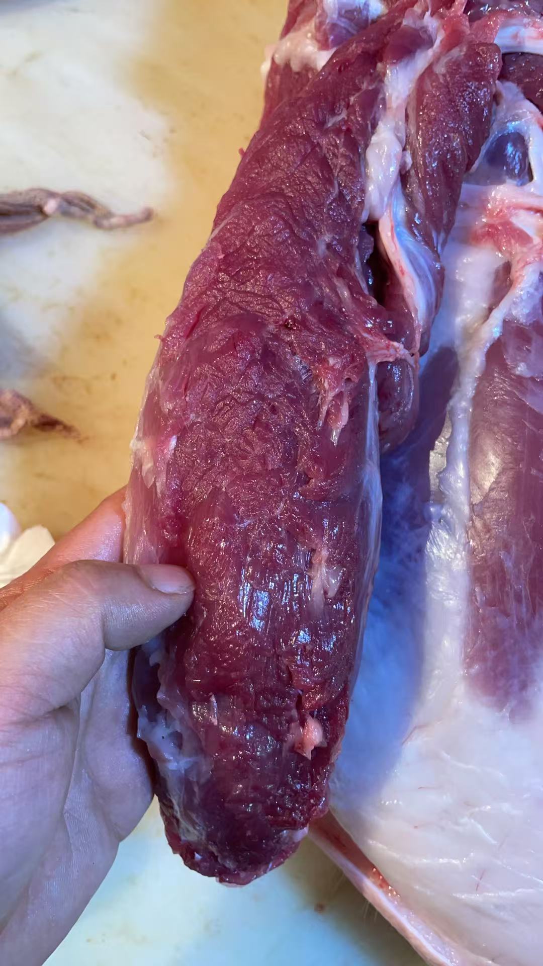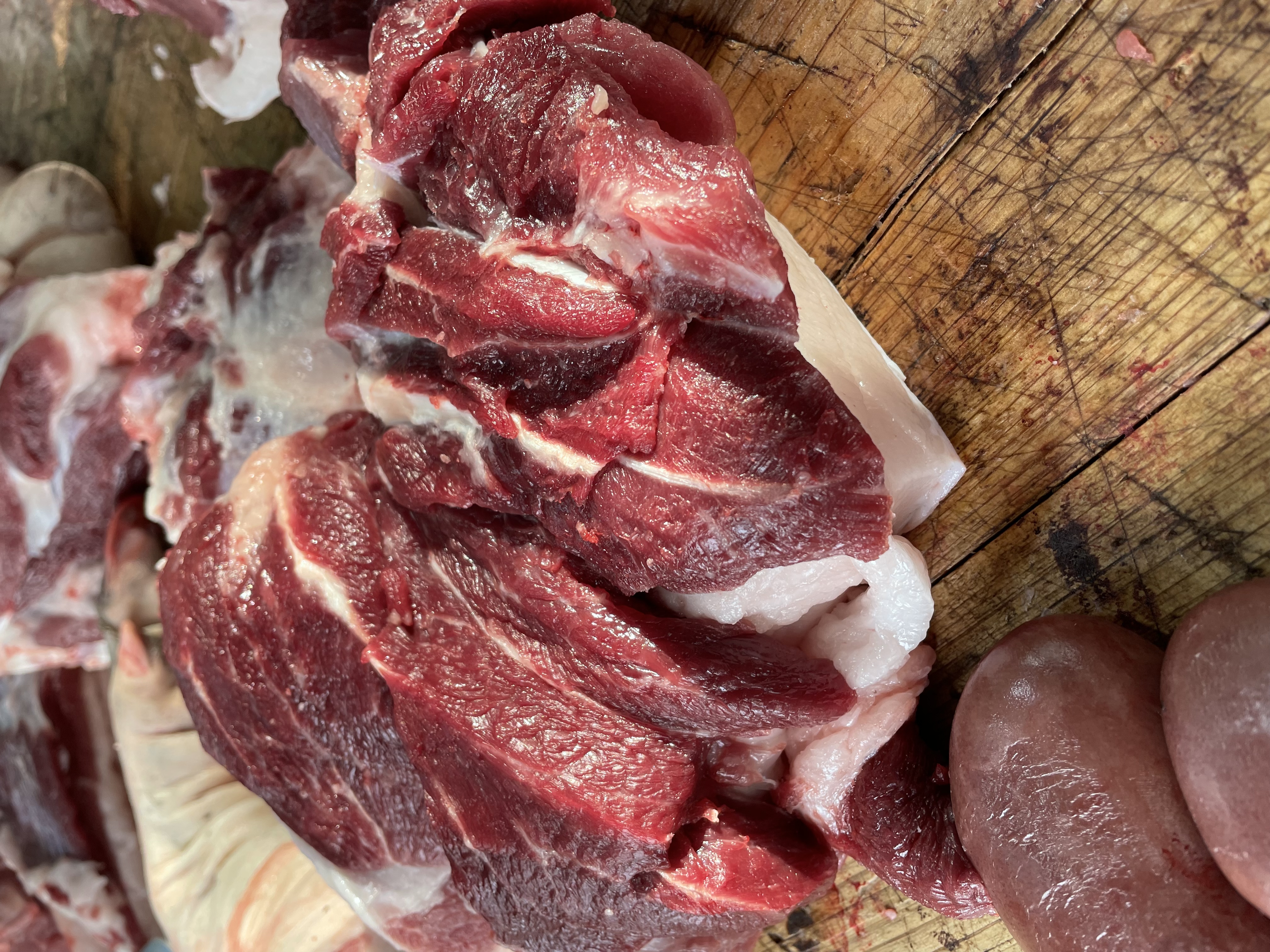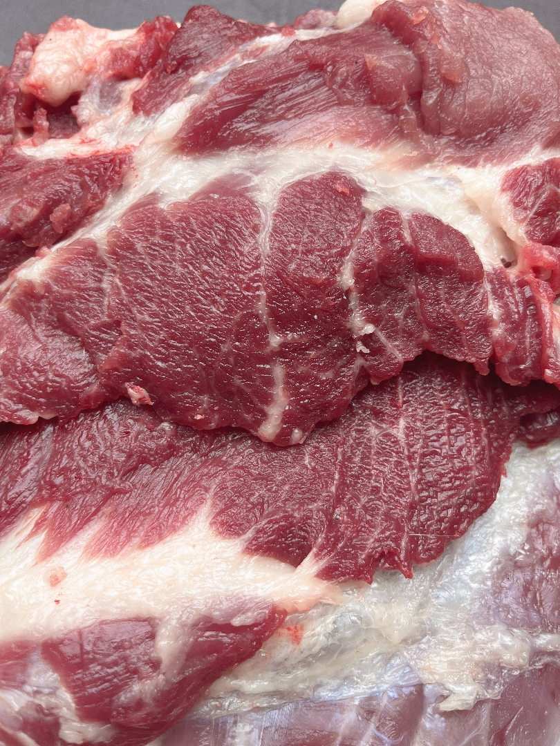 熟食喂养+365天以上的喂养时间,猪肉的瘦肉呈现油浸浸的颜色。