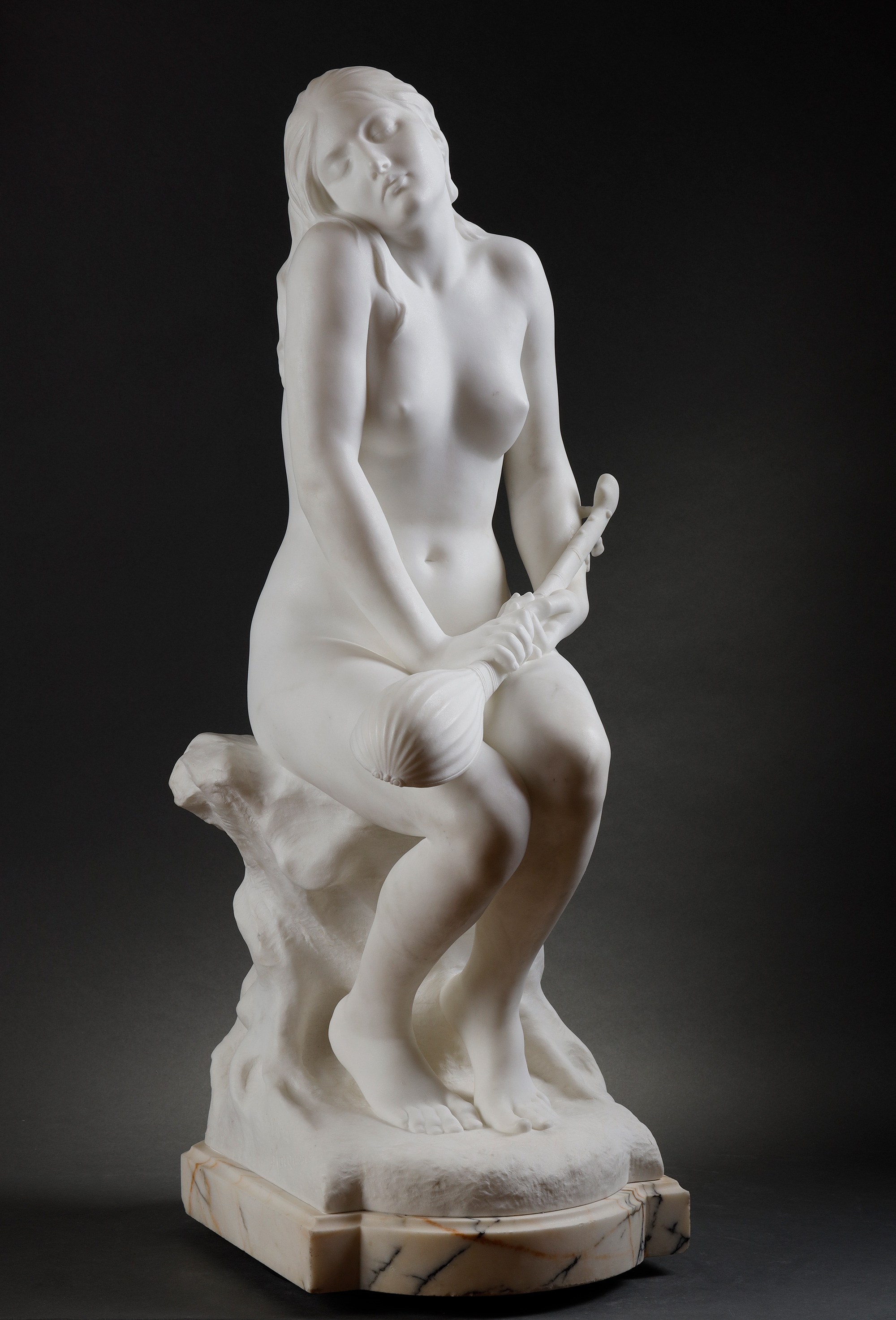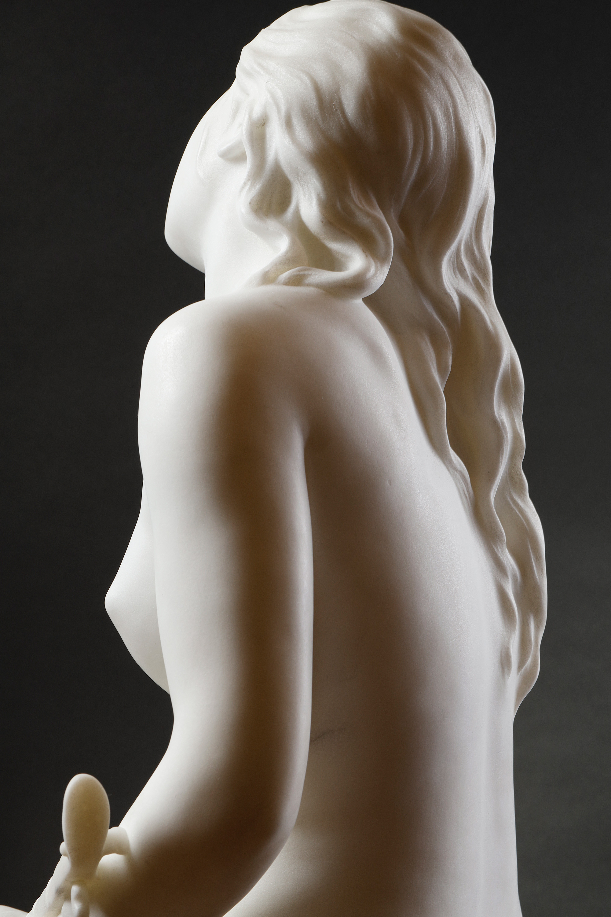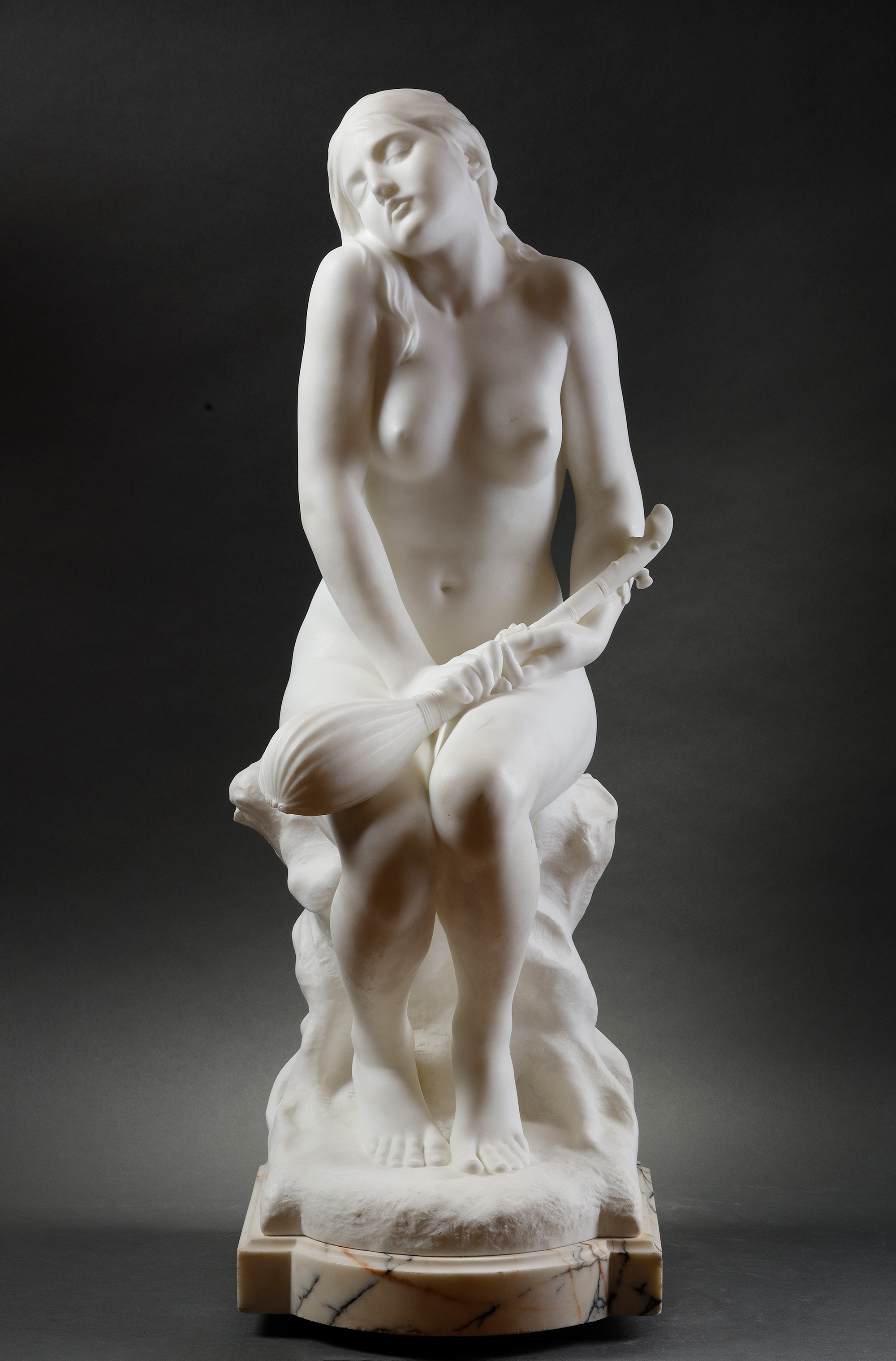 19世纪末20世纪初法国雕塑家Laurent-Honoré Marqueste签名创作人物主题卡拉拉大理石雕塑作品《蝉之女神》