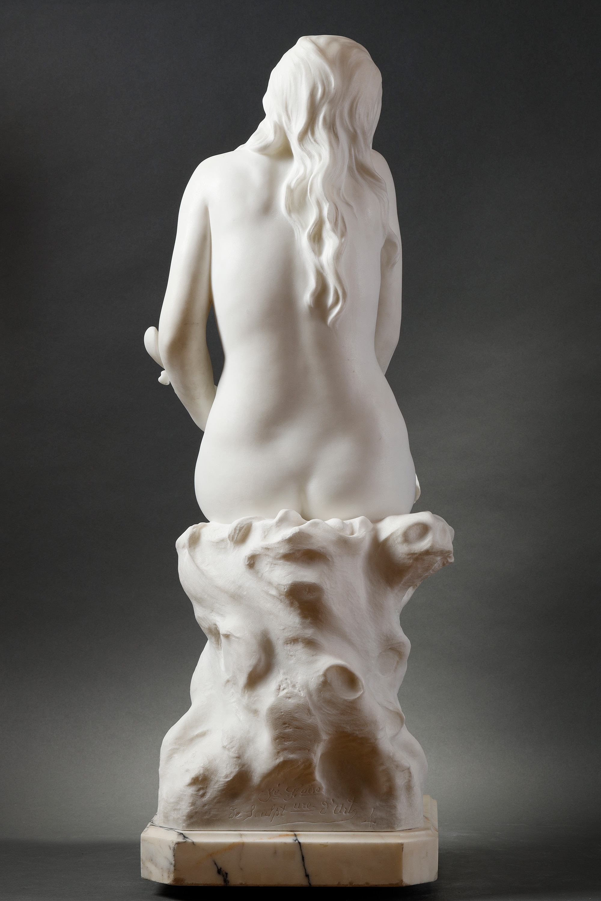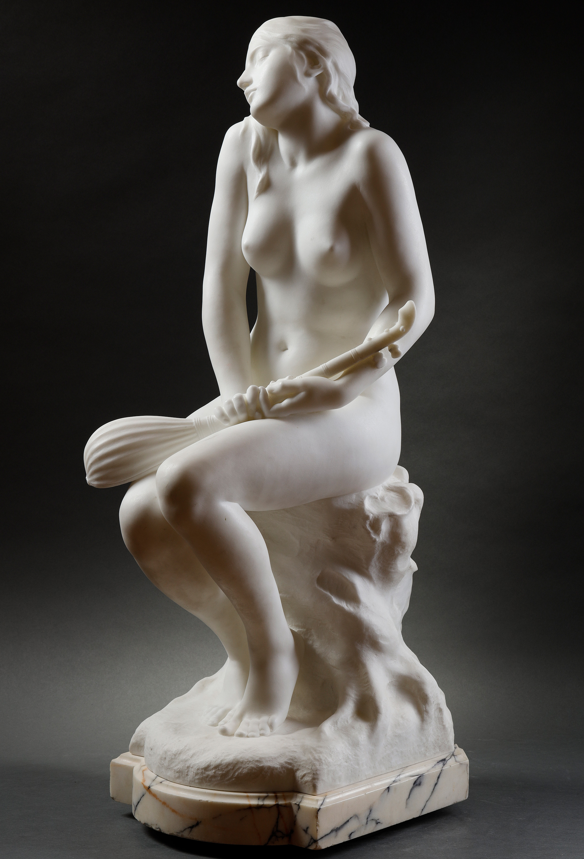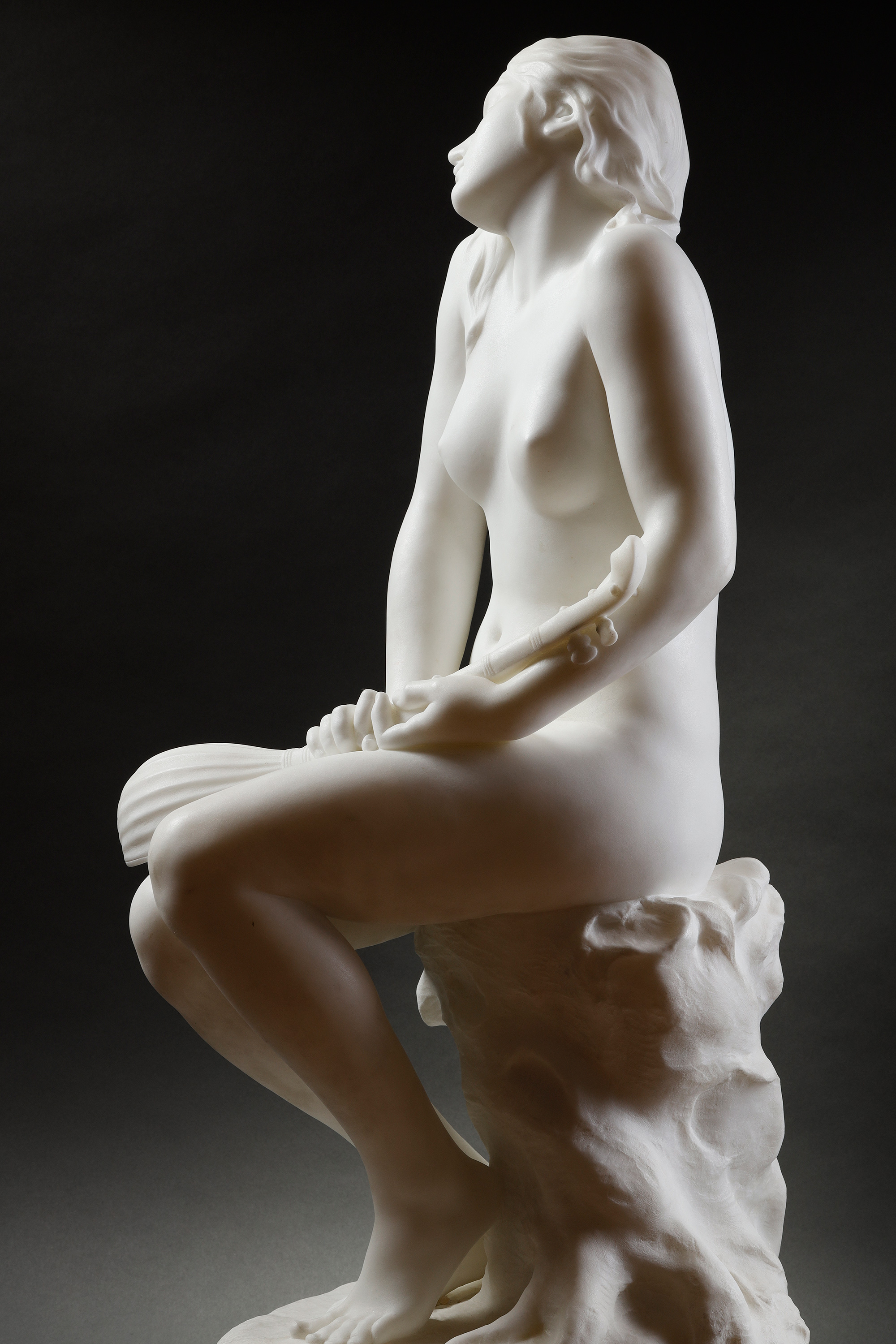 19世纪末20世纪初法国雕塑家Laurent-Honoré Marqueste签名创作人物主题卡拉拉大理石雕塑作品《蝉之女神》