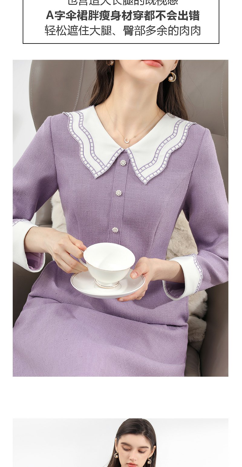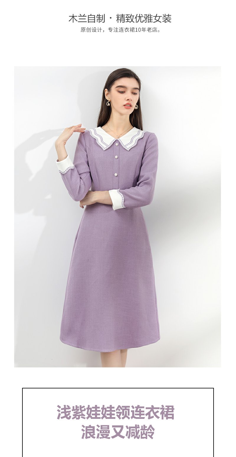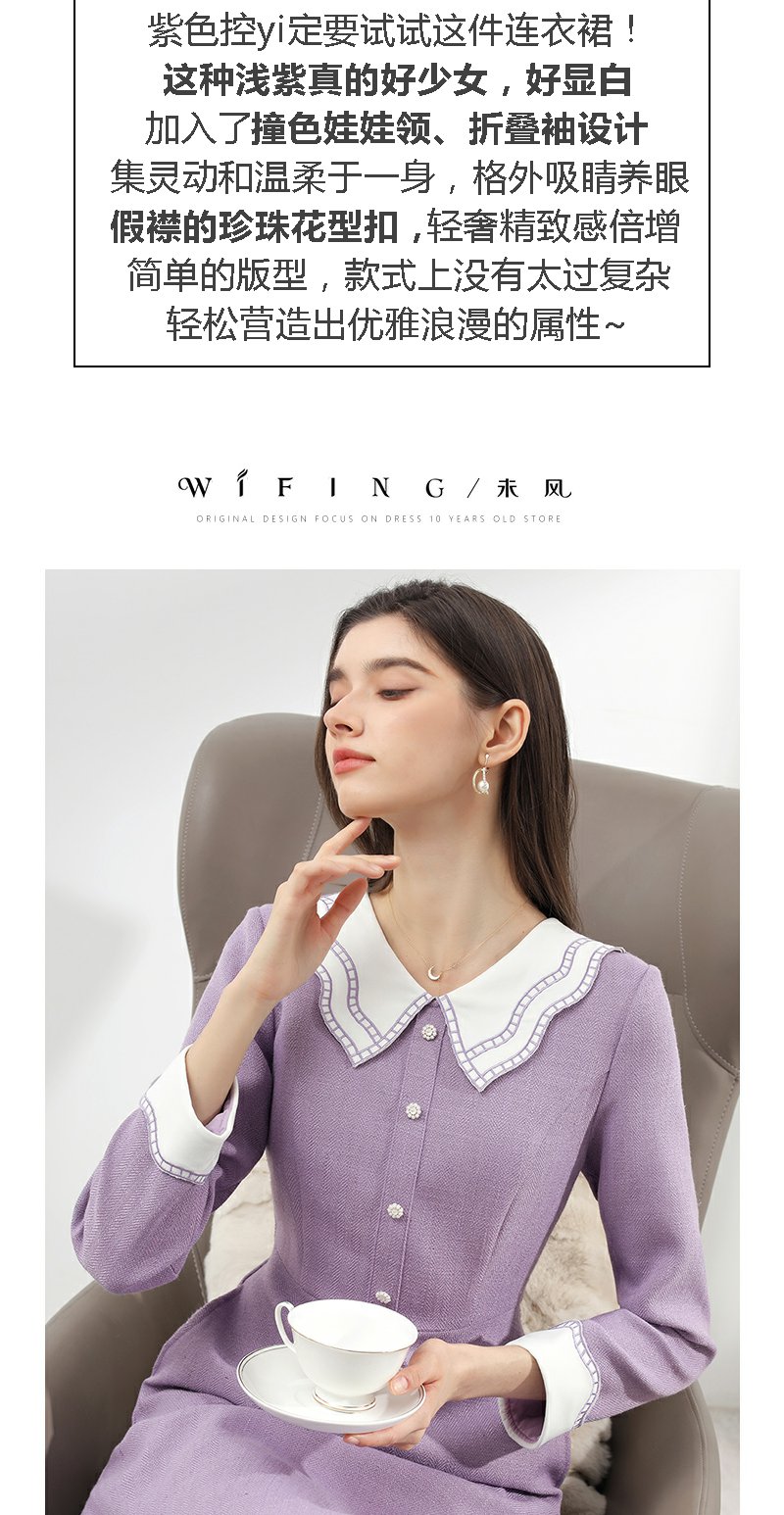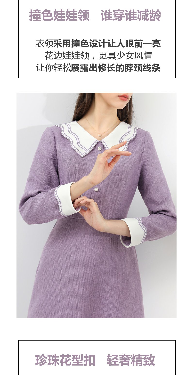 未风紫色娃娃领新年连衣裙女冬2023冬季新款女装小香风娃娃领裙子