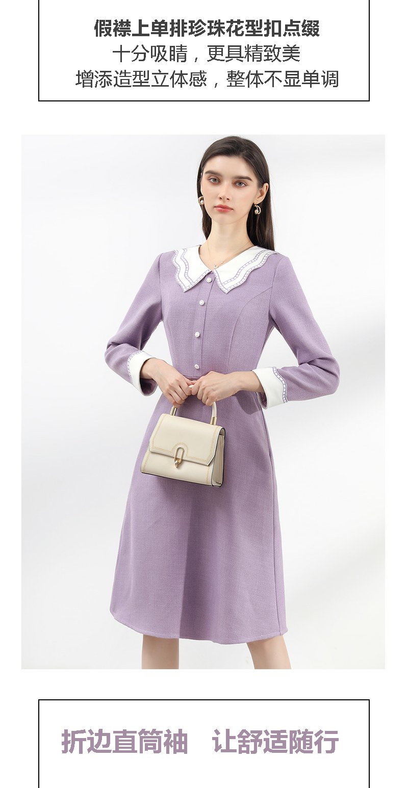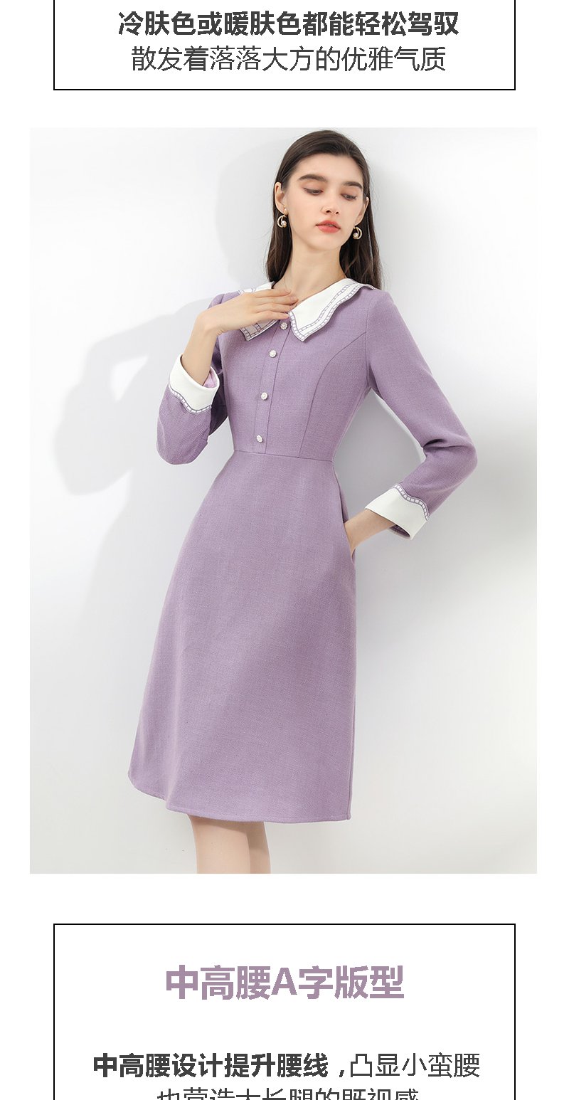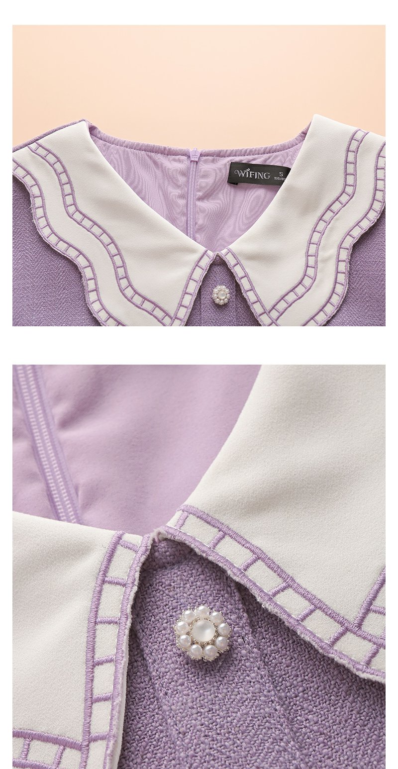 未风紫色娃娃领新年连衣裙女冬2023冬季新款女装小香风娃娃领裙子