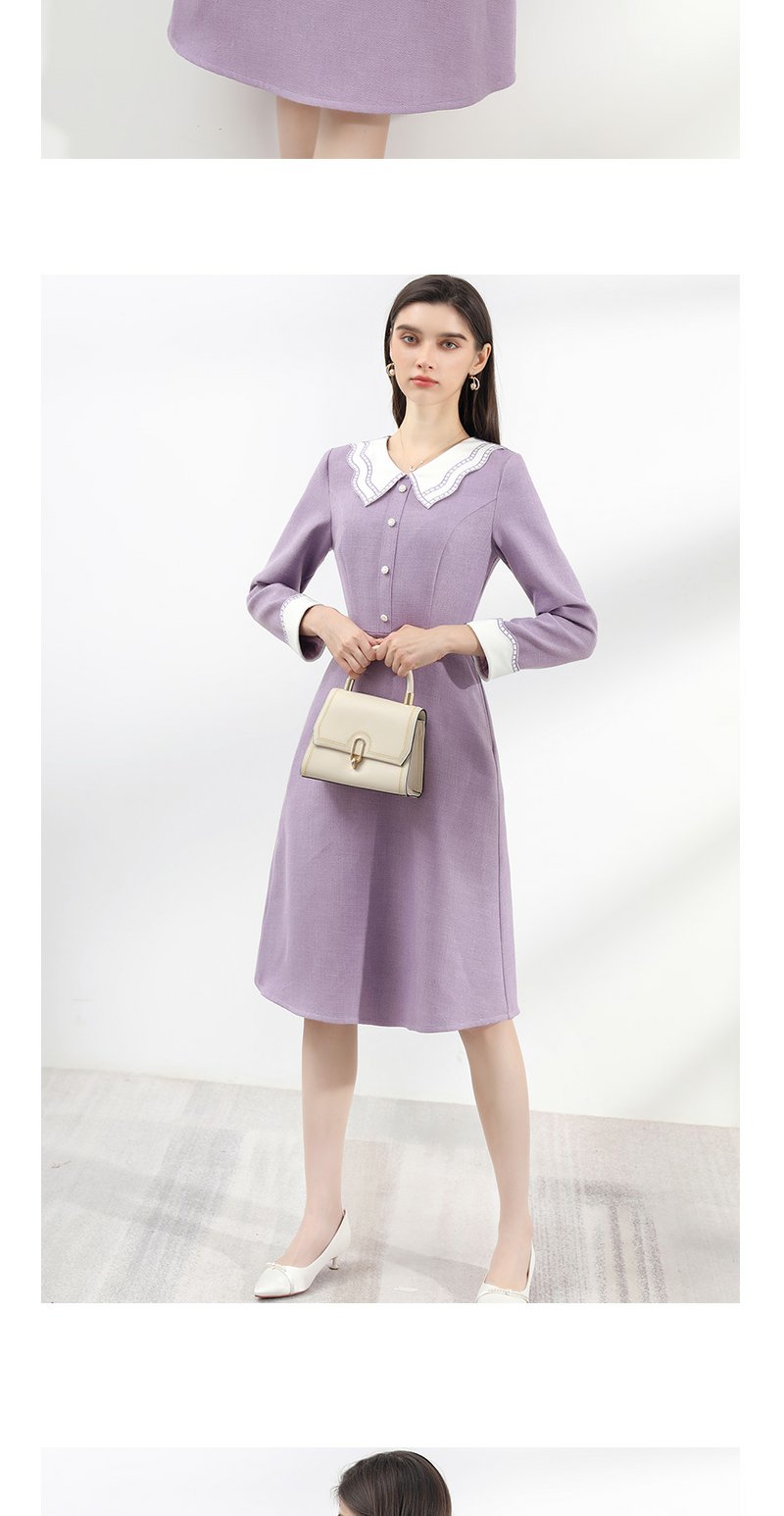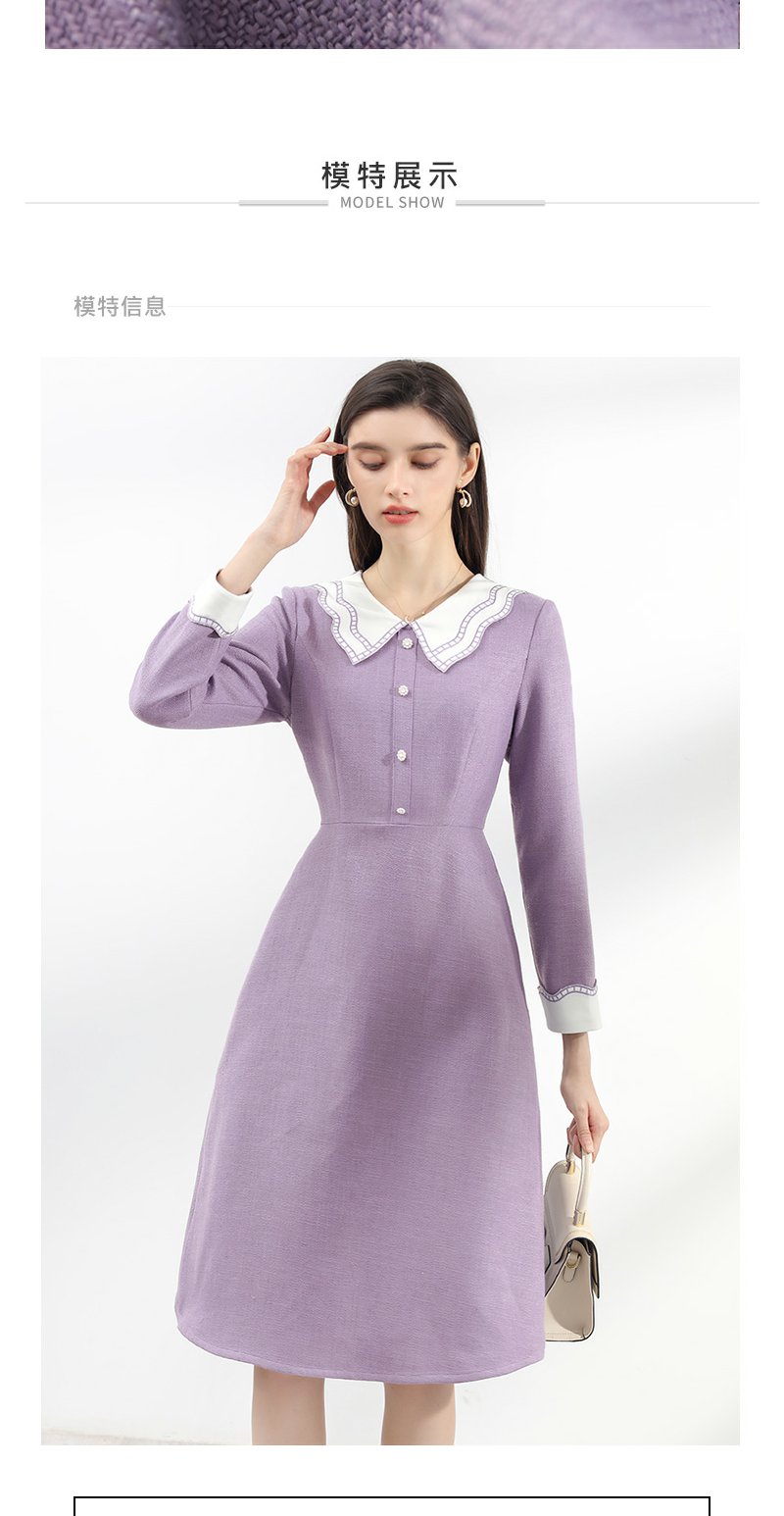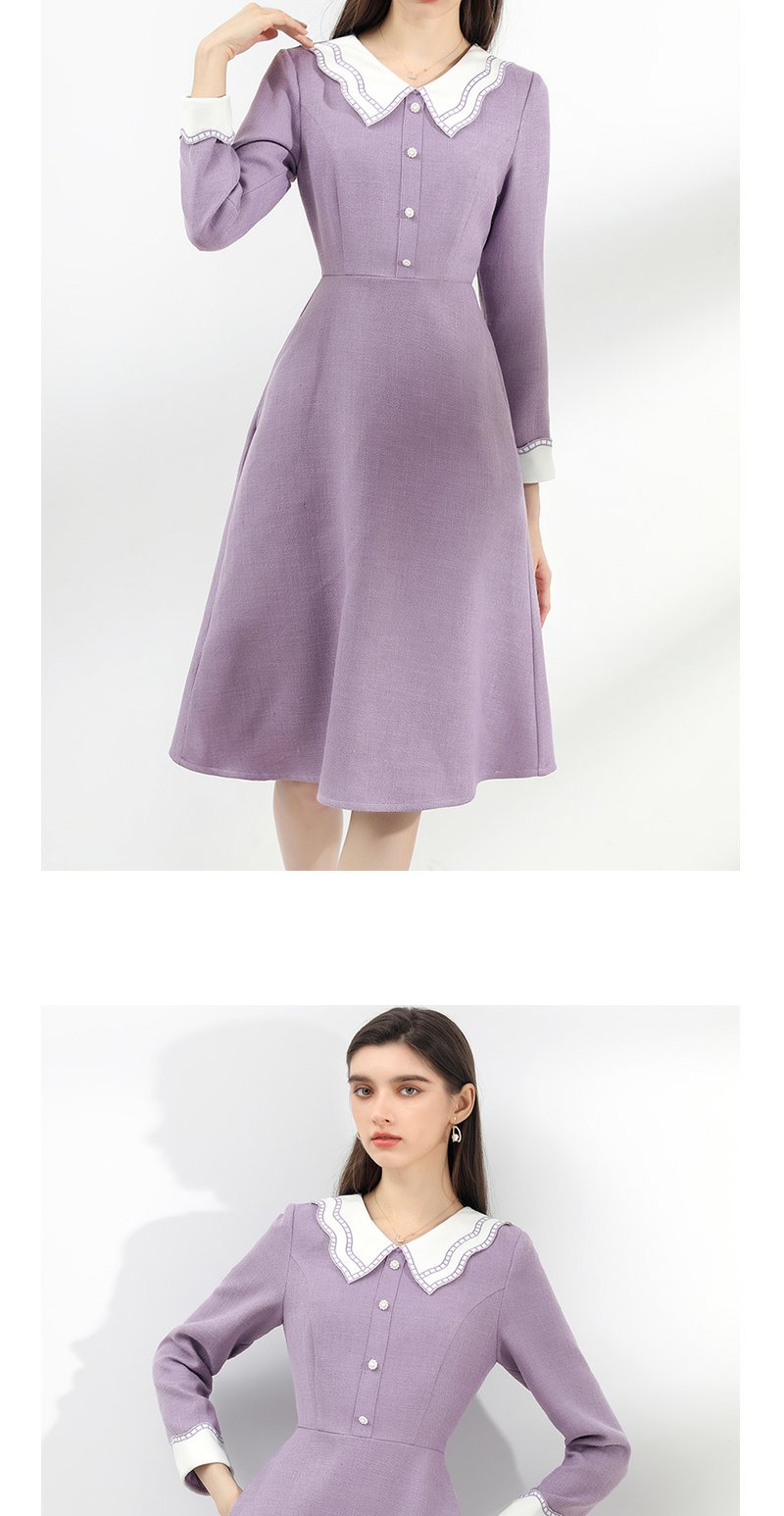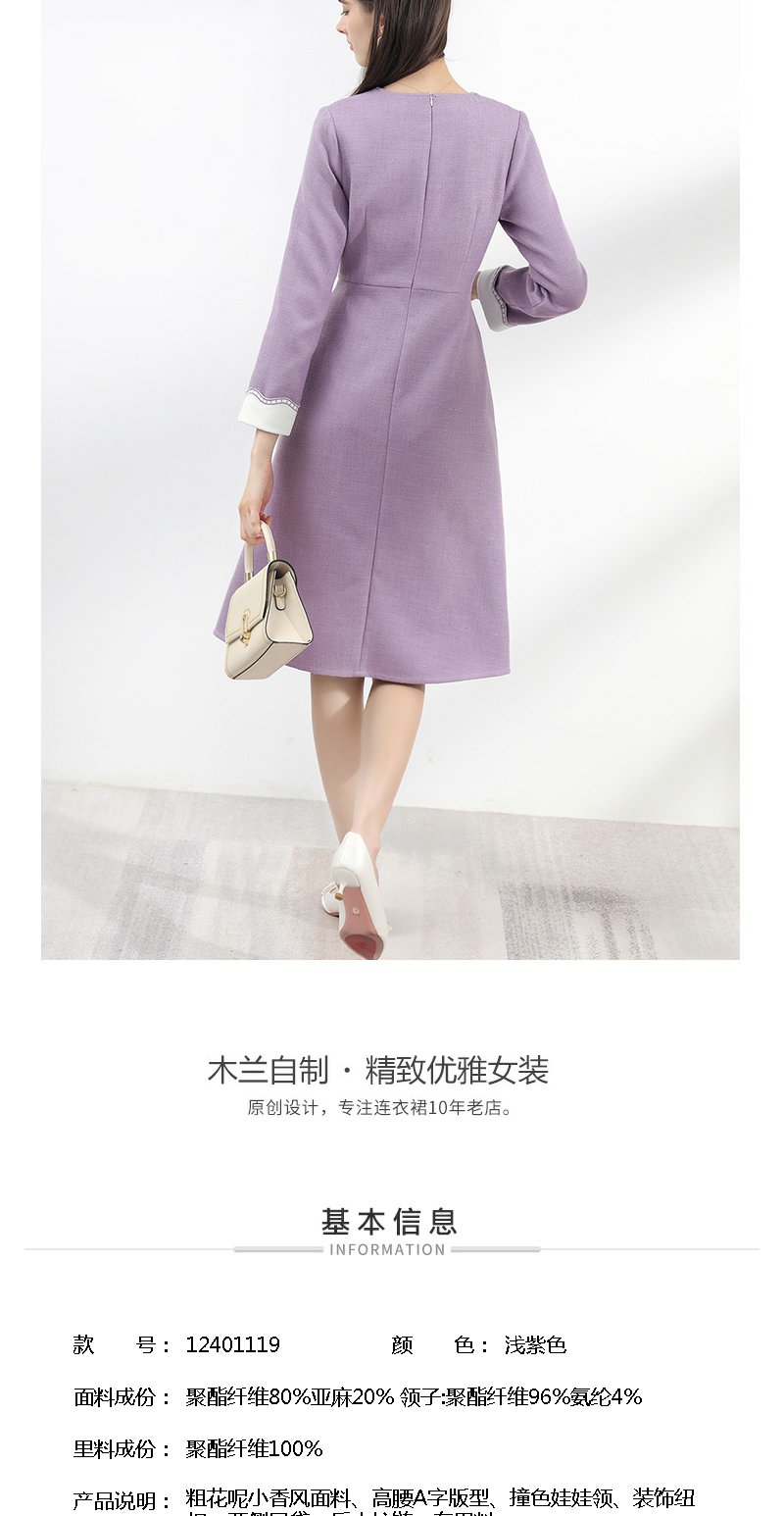 未风紫色娃娃领新年连衣裙女冬2023冬季新款女装小香风娃娃领裙子