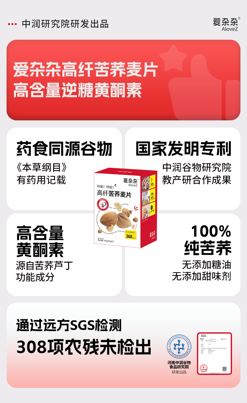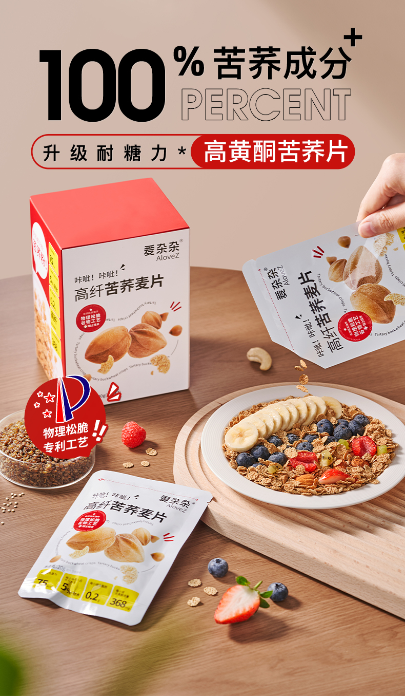 爱杂杂高纤苦荞片慢碳黄酮素早餐代餐控摄期清由基即食零食健身餐纯苦养麦片独立包装