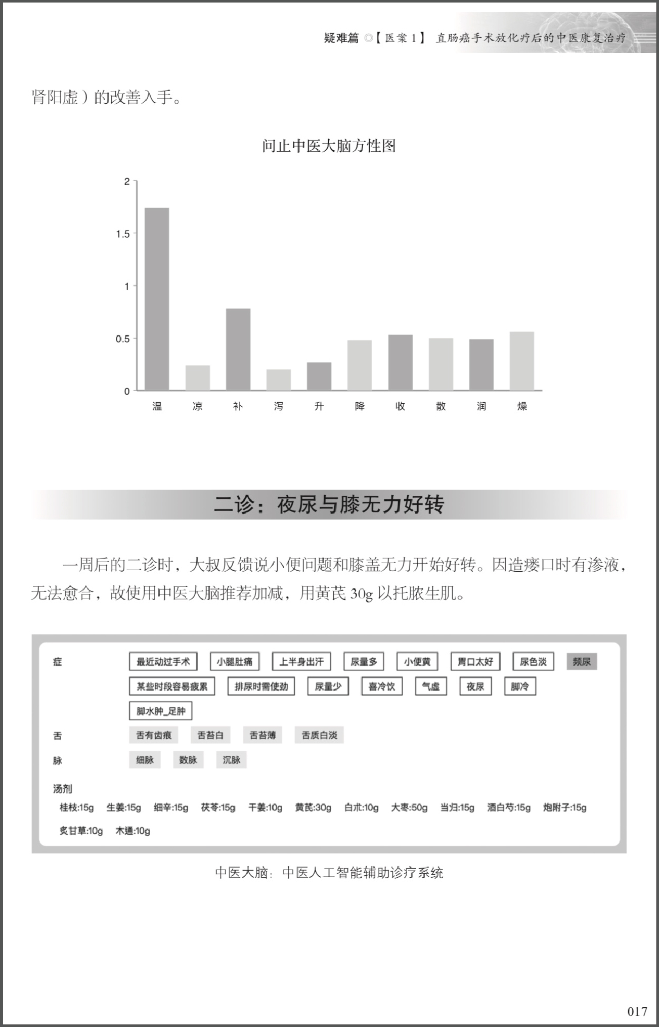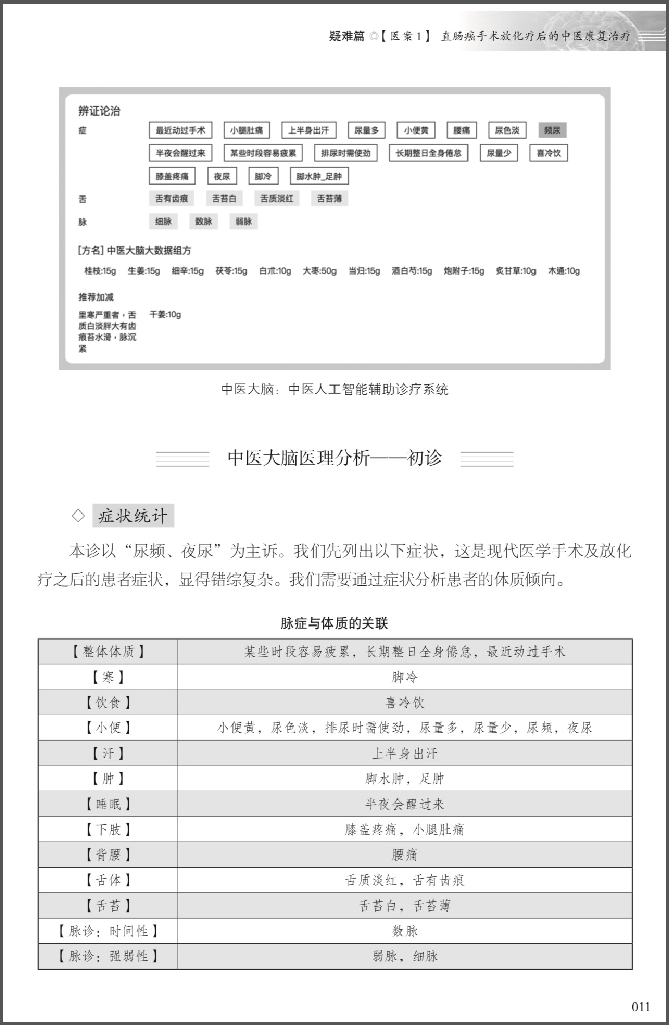 中医大脑所治疗的大量常见病症,虽然我们认为那才是中医大脑日常的表现结果,但我们在本书就不做收录了。我们另一个选取医案的原则是希望透过这则医案能让读者有所收获和启发。更多的就诊医案,我们每周通过“深圳问止中医”的公众号对外发布,也请大家阅读后向我们提出批评和指导。