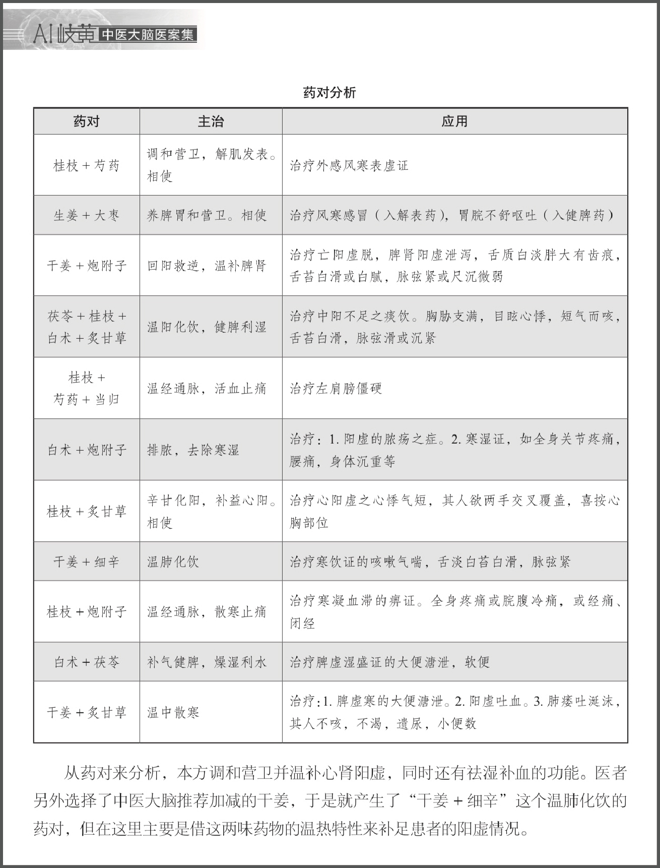 5. 在《中年壮汉的广泛性焦虑症》医案中,我们看到中医大脑在对治情志问题时扶阳思想的具体展现。我们从药对分析中发现了大部分的药对都是能够补阳助阳的。透过药对整理,我们可以清楚地看到本案中方剂如何透过各种不同功能的药对来做阳的调控和增益。