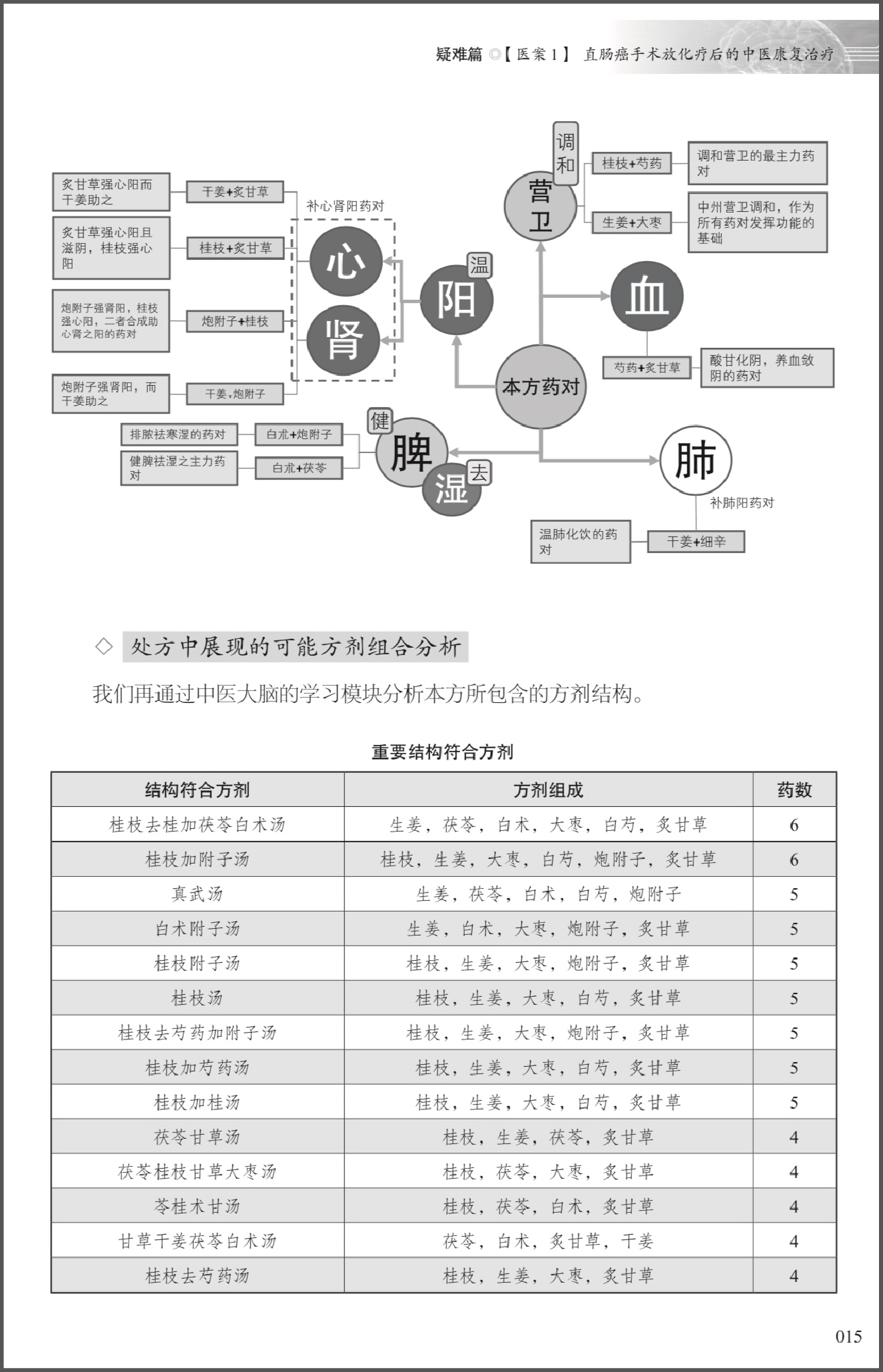 3.然后我们再来分析本处方所包含的方剂结构组合。这是我们了解历代名方和中医大脑所开方之间关系的一个重要分析模式。