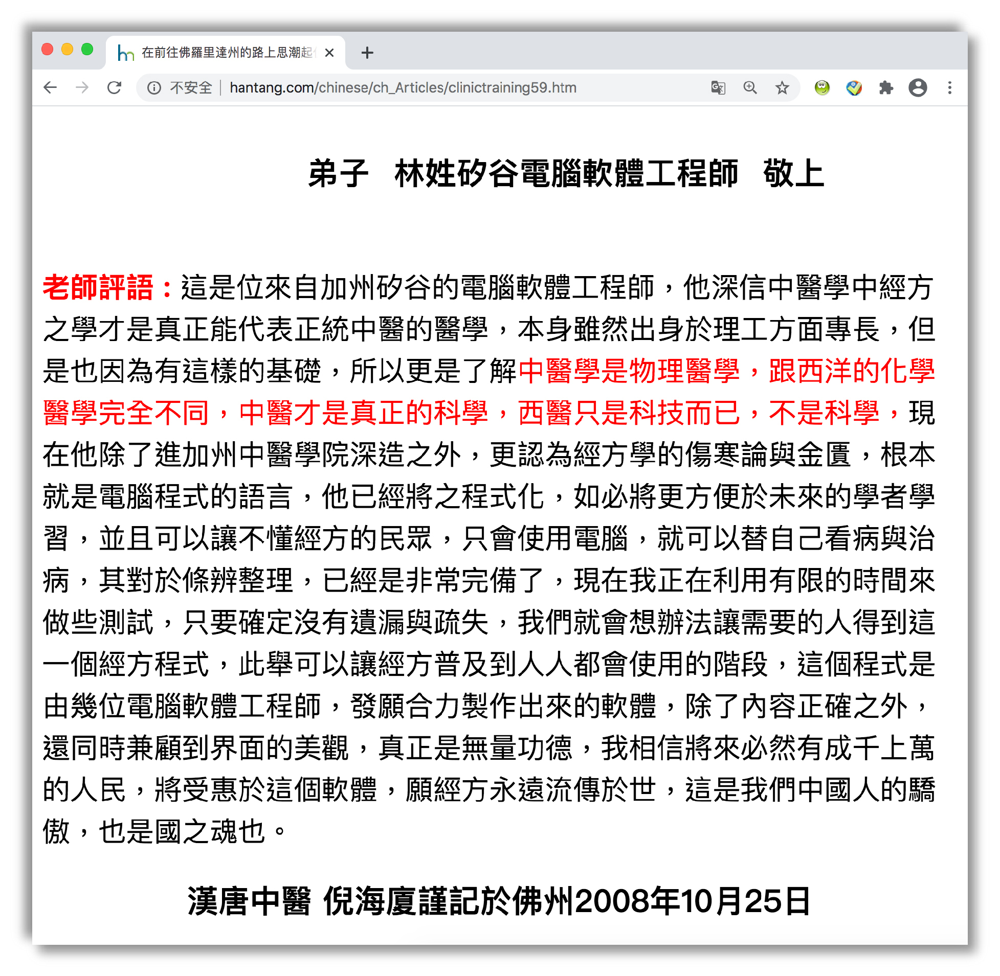 2008年,受到恩师倪海厦老师的鼓励,我开始了一套名叫“经方专家系统”的程序开发。当时的时空环境下,人工智能还不成气候,云计算也还没有发展,所以那套程序可以说是一个很基础的中医经方计算器。但是倪海厦老师看过后十分开心,他说:中医经方的逻辑性很强,如果这套系统可以被世人所用,偏远地区的患者也都可以随时随地看到“名医”了。