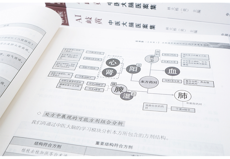 在原本医者的临床纪录说明之外,本书的体例按照“整体病症分析、症状统计、体质分析、中医大脑处方、处方中的用药分析、处方中的药对分析、处方中展现的可能方剂、组合分析、方性分析”等几个方面展开。读者除了可以看到诊治的原貌,也可以读到我们对中医大脑结果的分析和说明。为清晰呈现,我们使用了大量的图表来帮助大家更好地掌握中医大脑的心法。