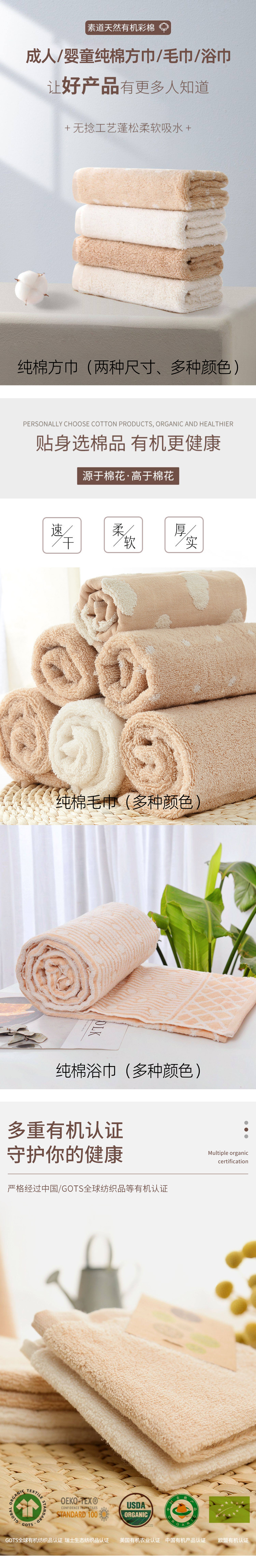 【方巾/毛巾/浴巾】100%棉,素道有机彩棉-吸水/柔软/面巾/蓬松/亲肤(基地直发-申通包邮),来自敦煌,品牌:素道【合作生产,公平贸易】