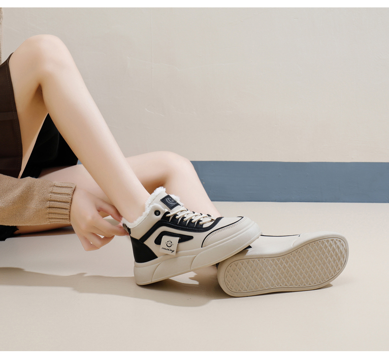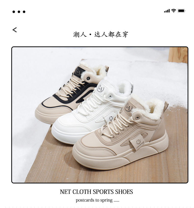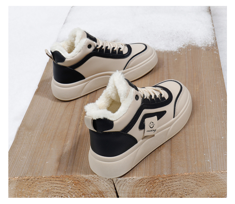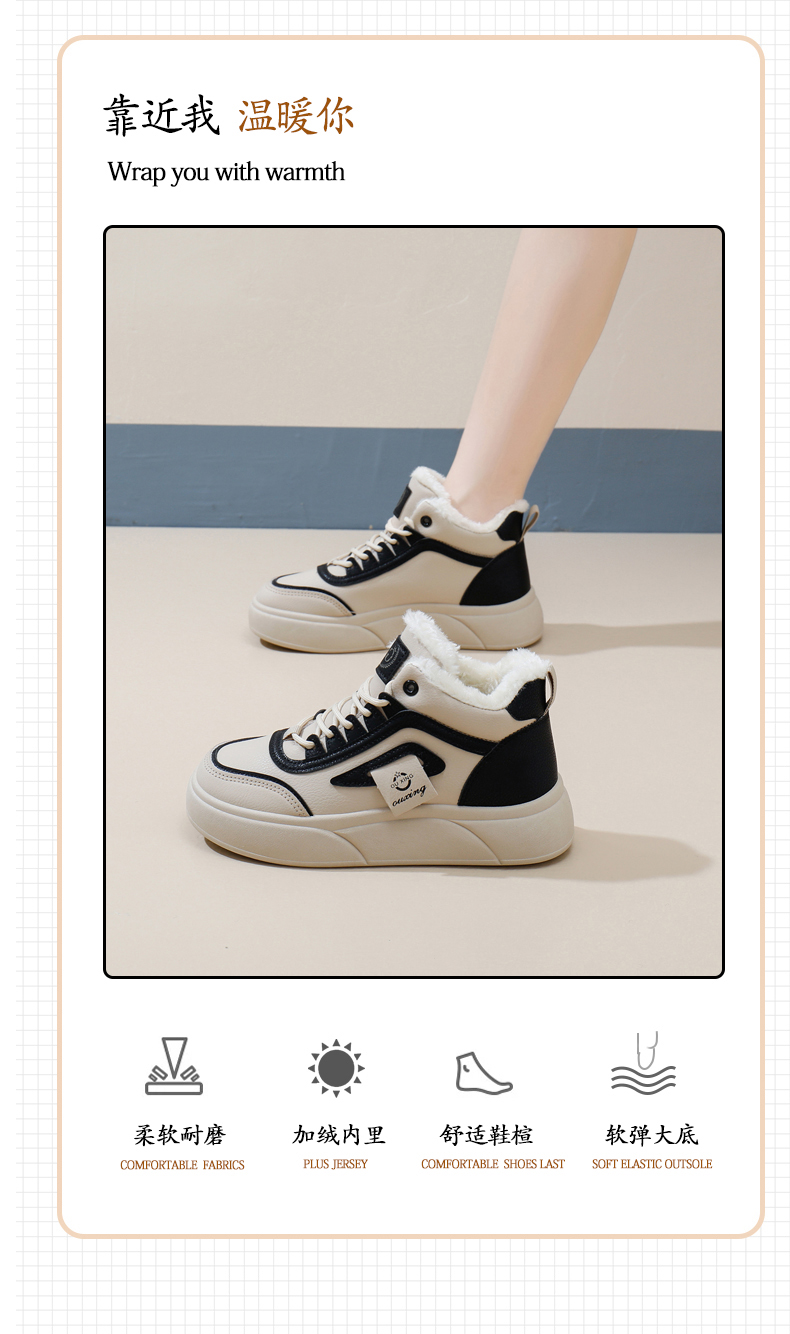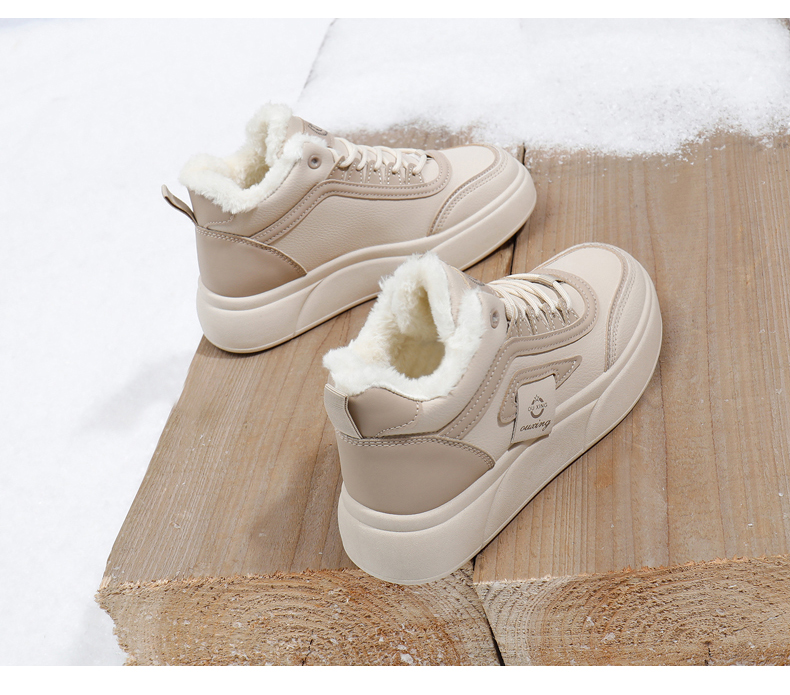 「AILISCOCO暖绒高邦板鞋」绒毛内里持久恒温 圆形鞋头行走舒适 柔软耐磨易打理