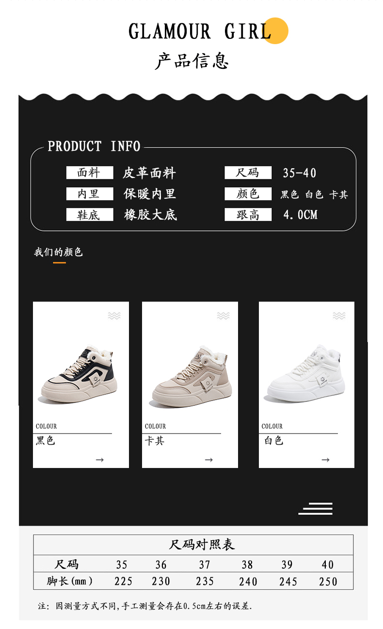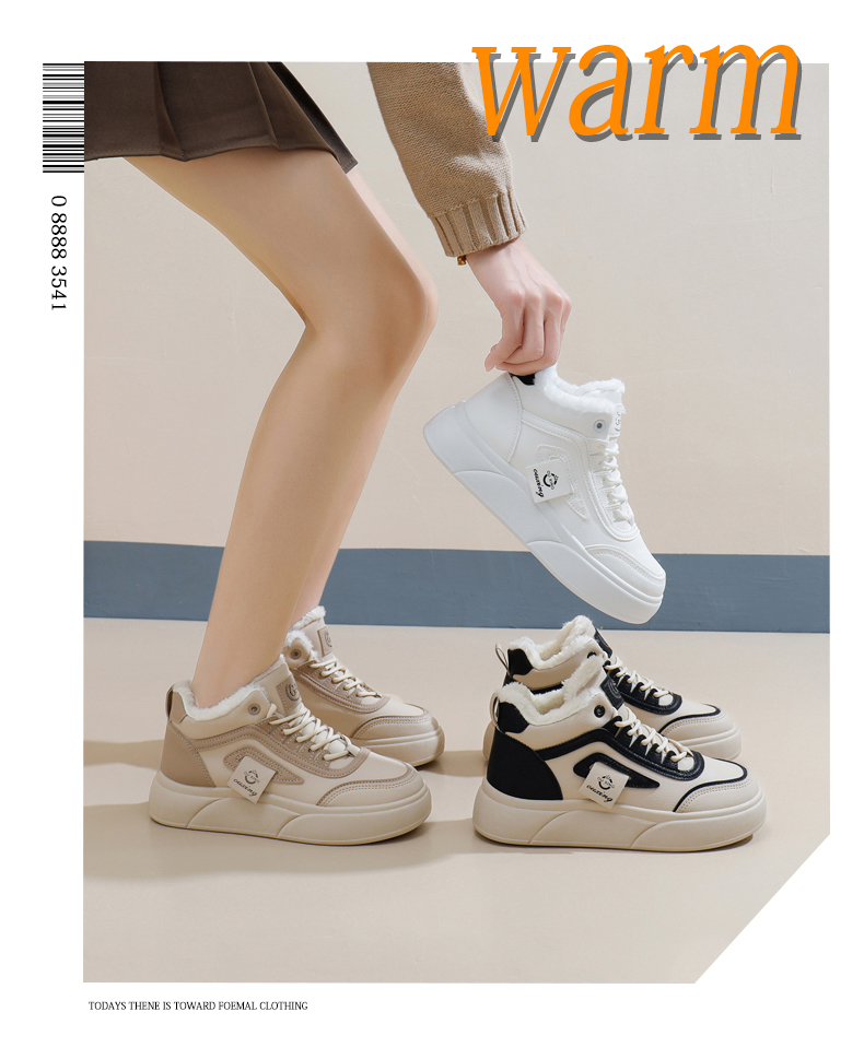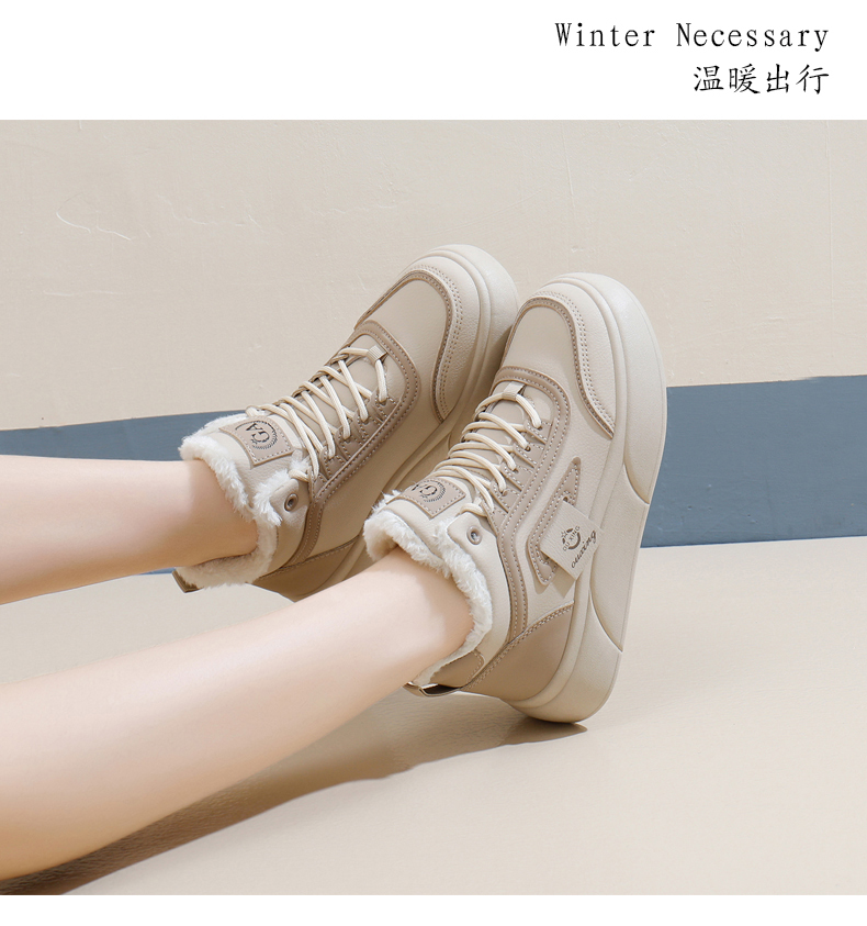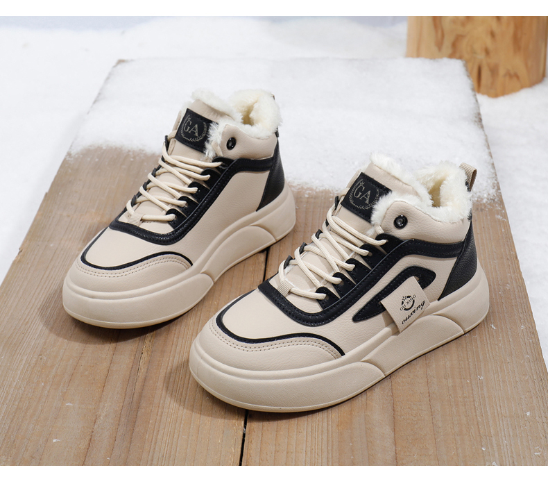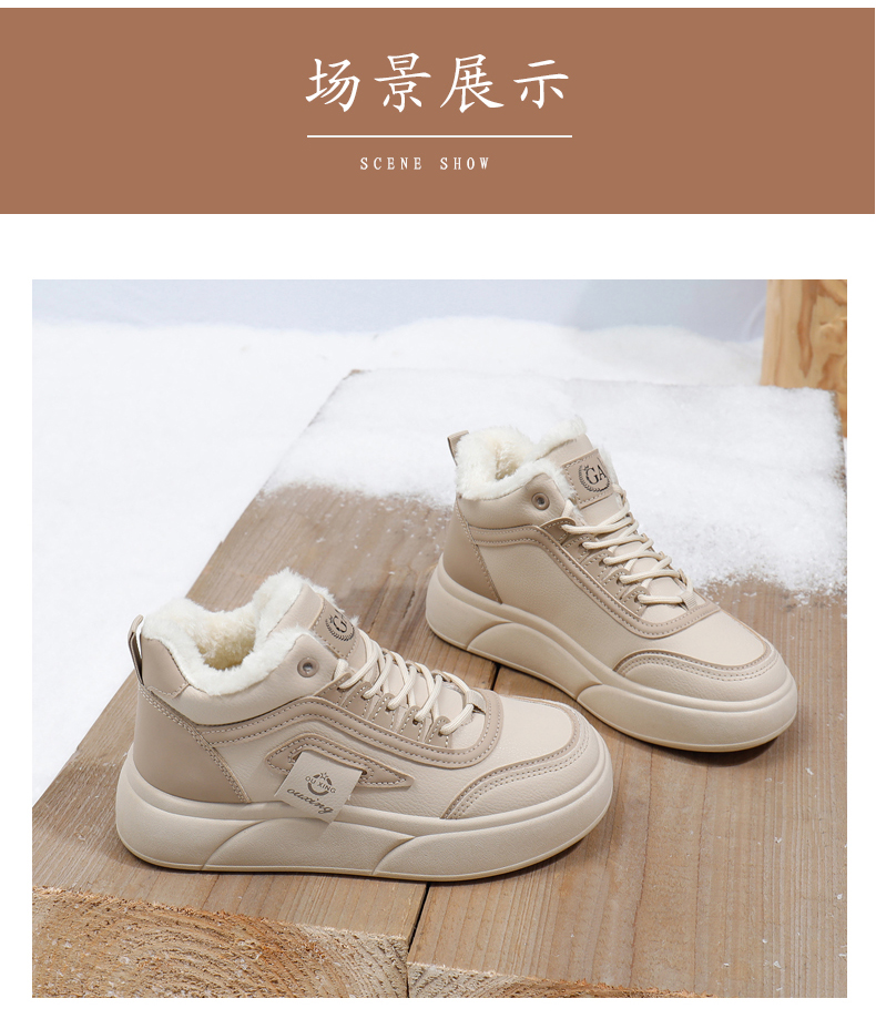 「AILISCOCO暖绒高邦板鞋」绒毛内里持久恒温 圆形鞋头行走舒适 柔软耐磨易打理