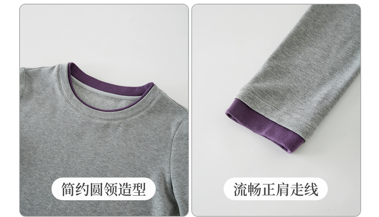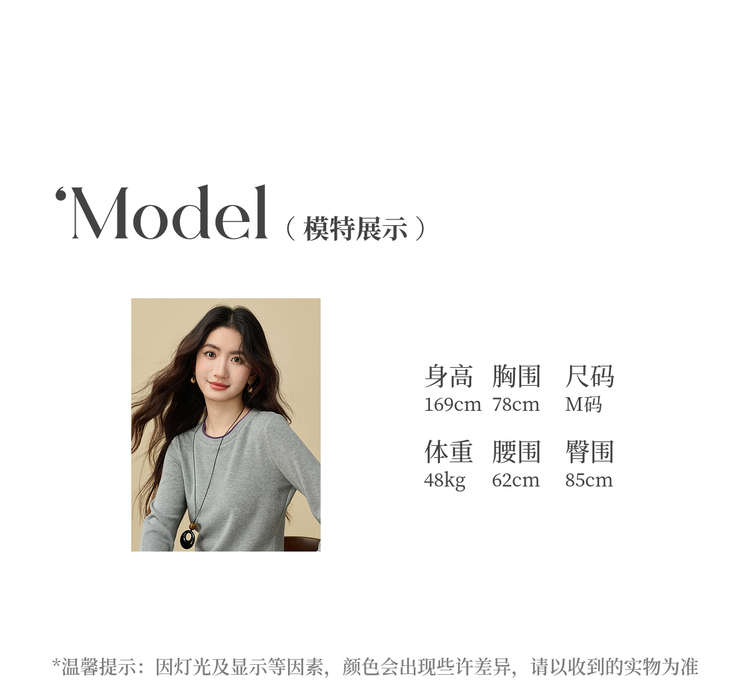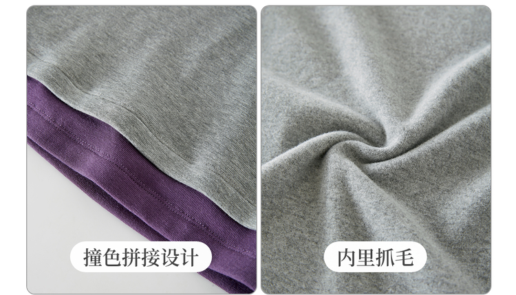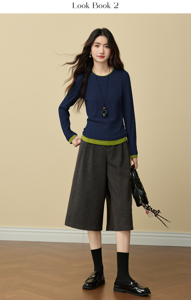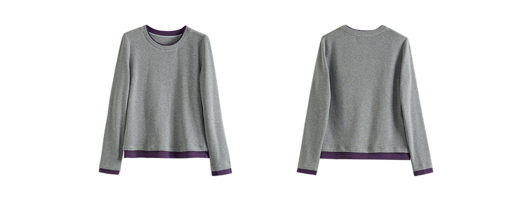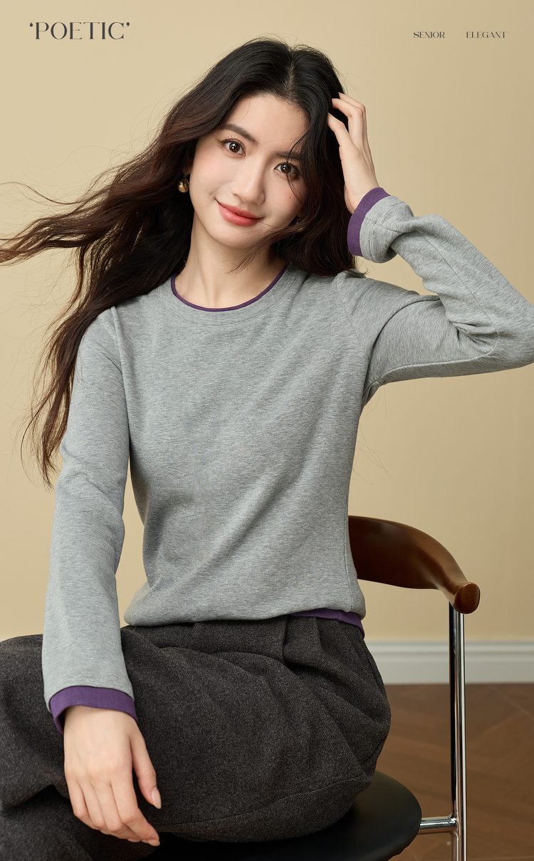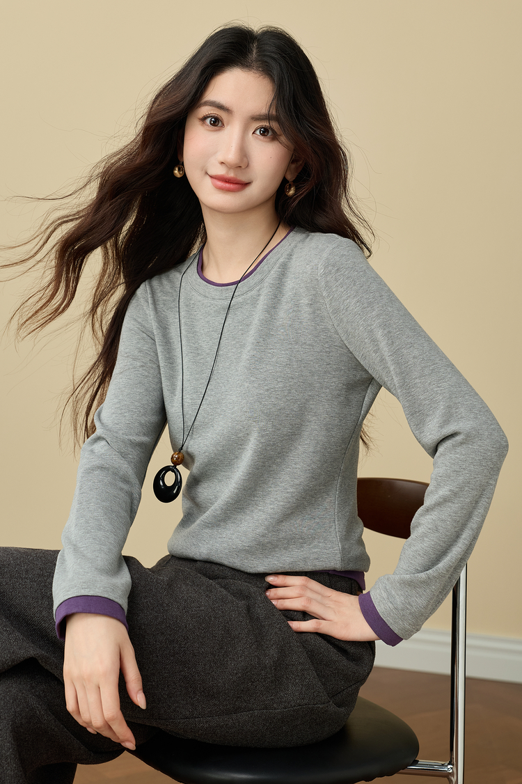 【12/03新品】熙世界撞色假两件抓毛T恤女长袖修身收腰圆领上衣打底衫2025秋冬