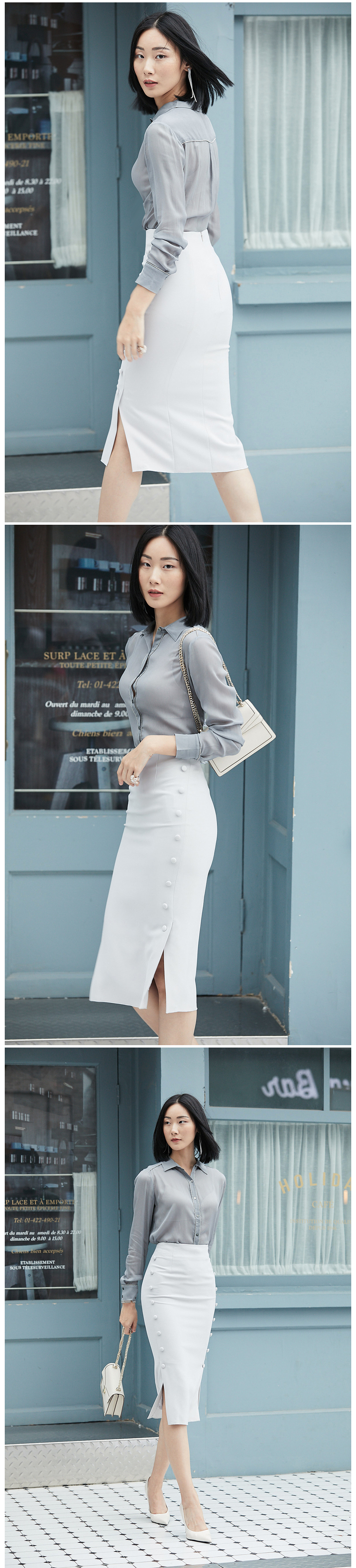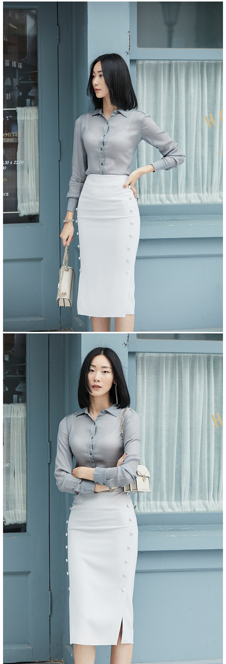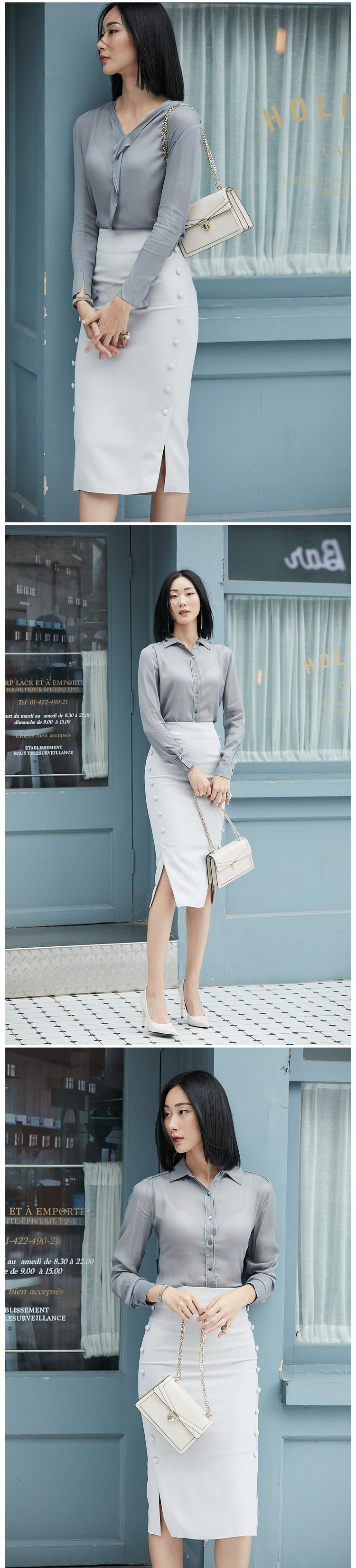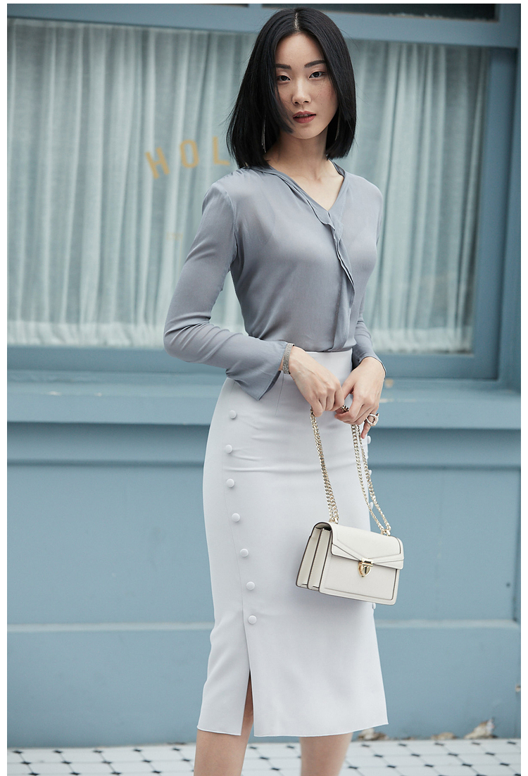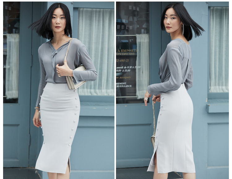 “小豆豆包臀裙”J9353706颈袖添香年夏款OL时尚修身气质女士中长款半身裙子新款包臀裙J9353706 偏大 建议拍小一码
