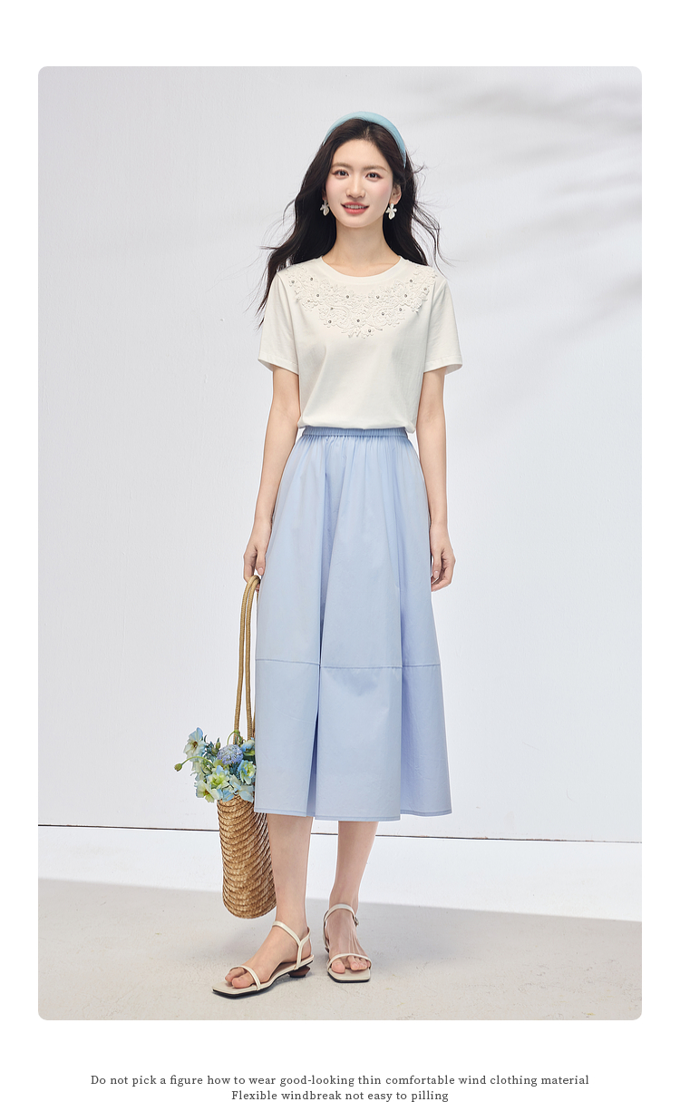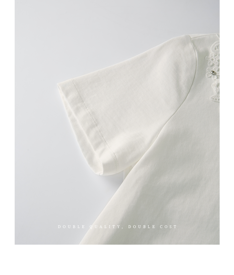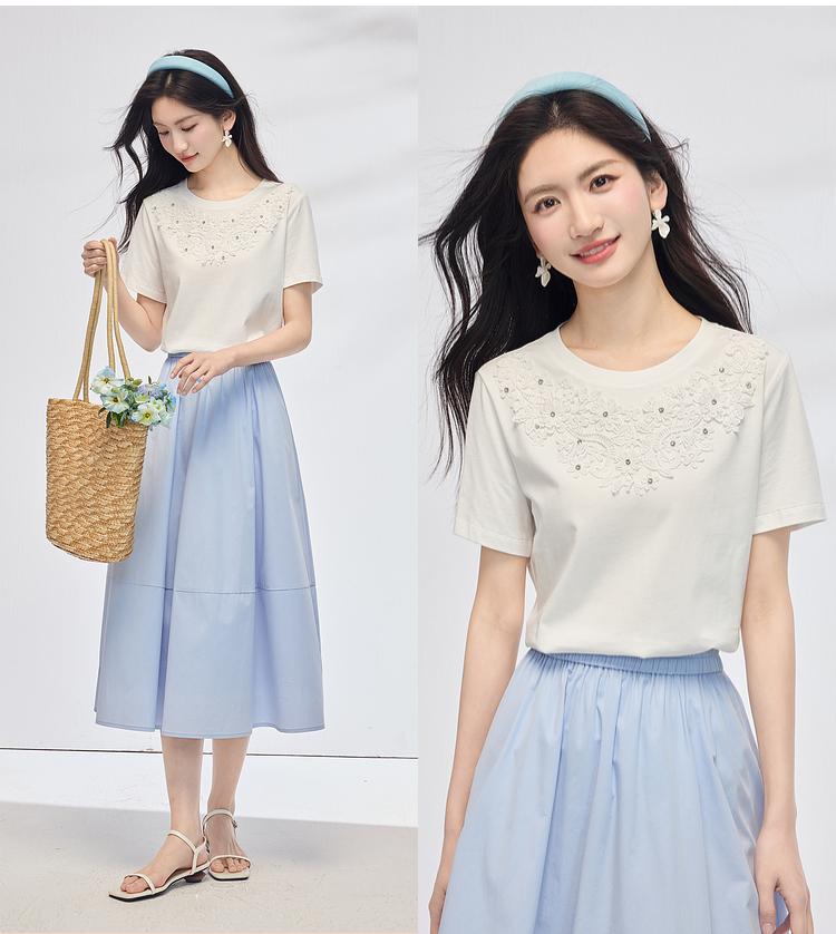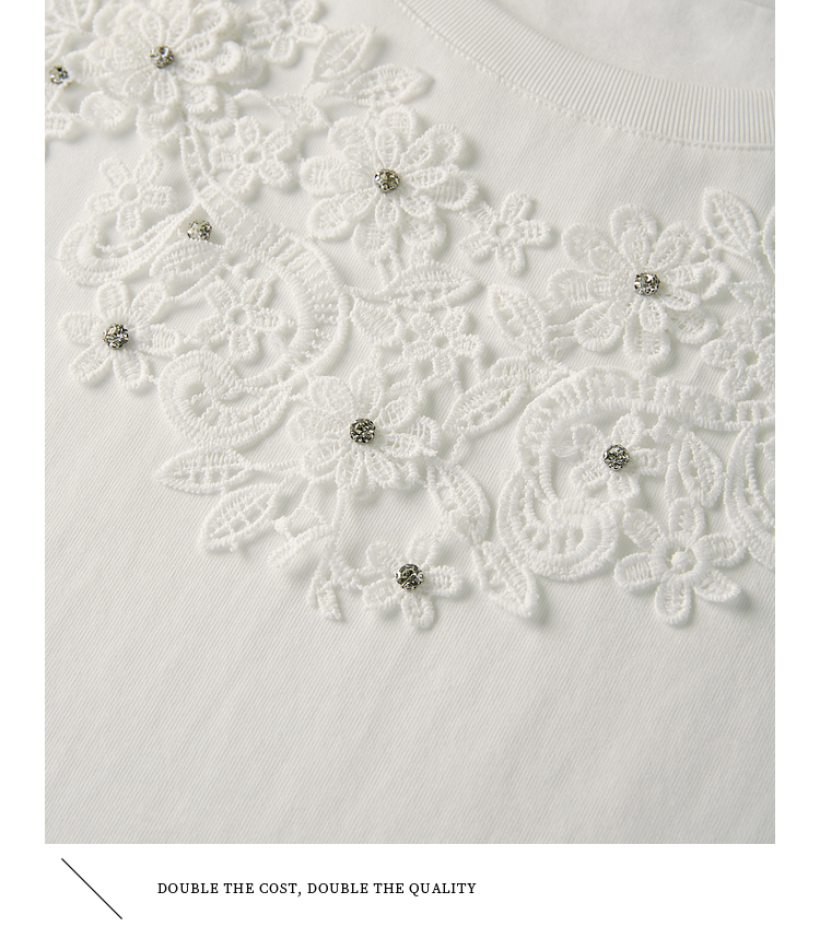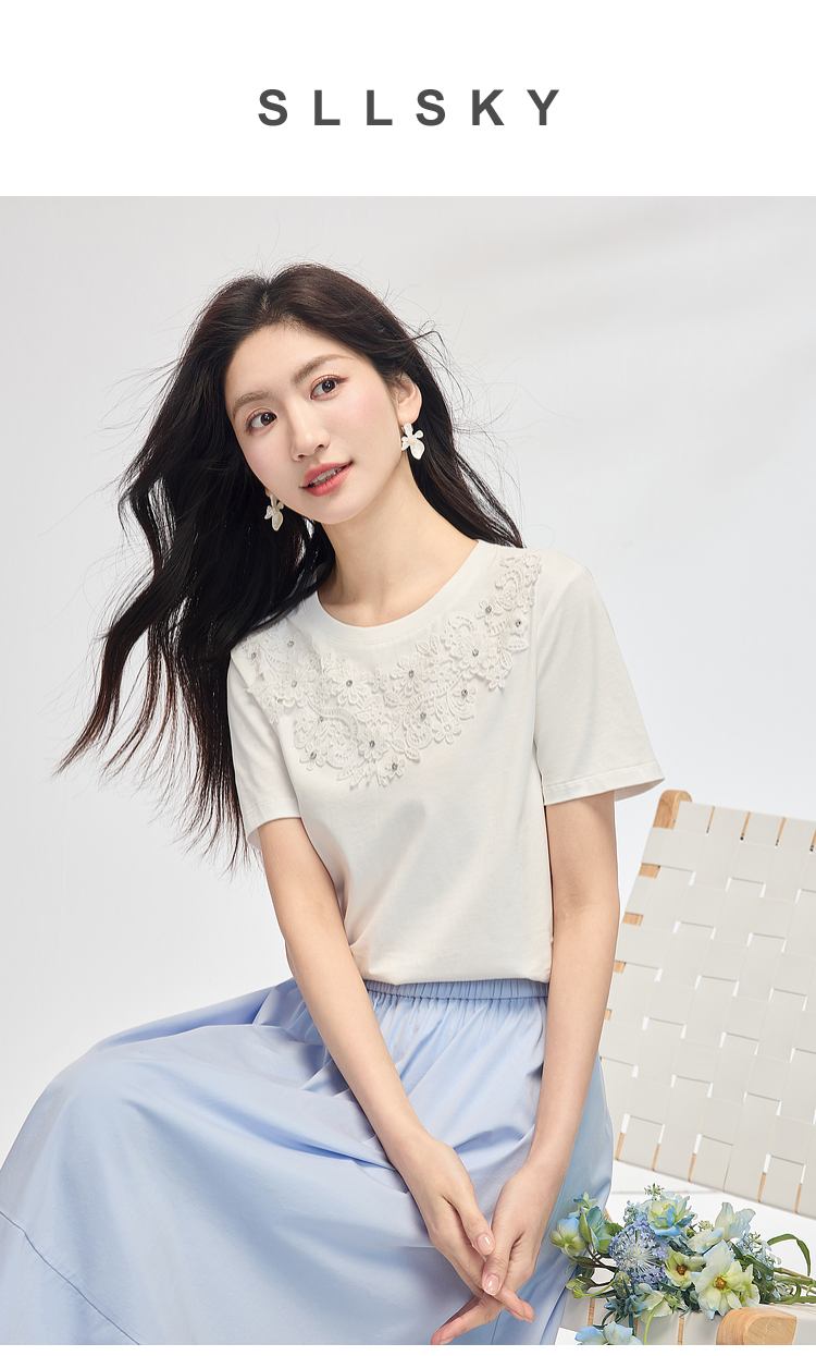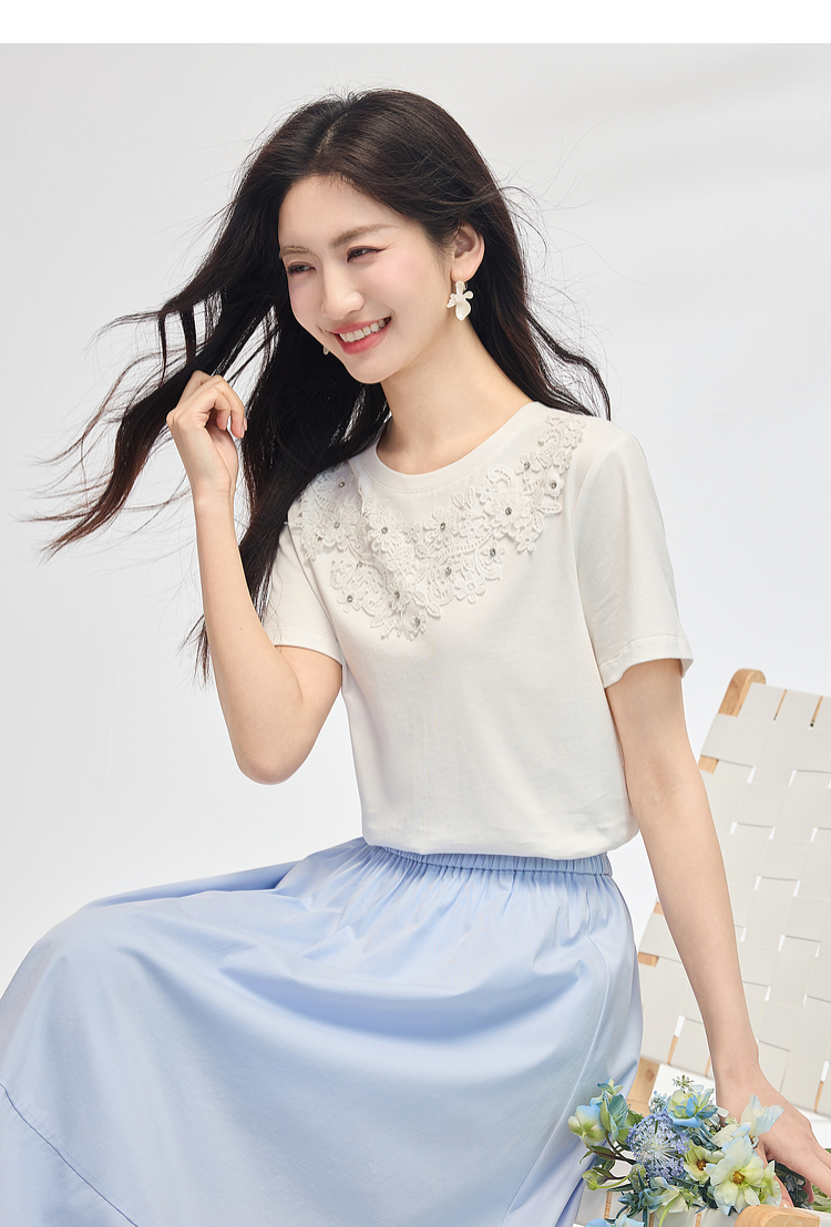 熙世界纯棉白色T恤女短袖2025夏新款设计感蕾丝花朵独特漂亮上衣