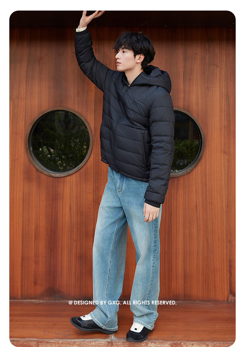 【三防】GXG男装 连帽轻薄排骨羽绒服厚外套短款羽绒服 25冬热卖