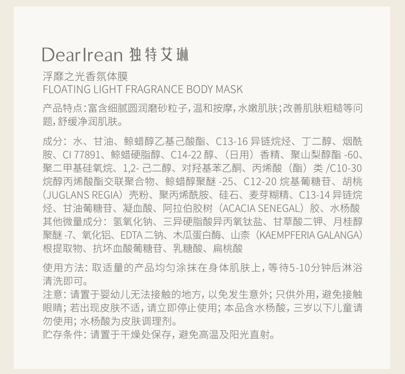 【品牌直发】Dr.Iream独特艾琳浮靡之光香氛体膜270g 身体乳烟酰胺保湿润肤温和去角质持久芳香送2盒8g磨砂膏