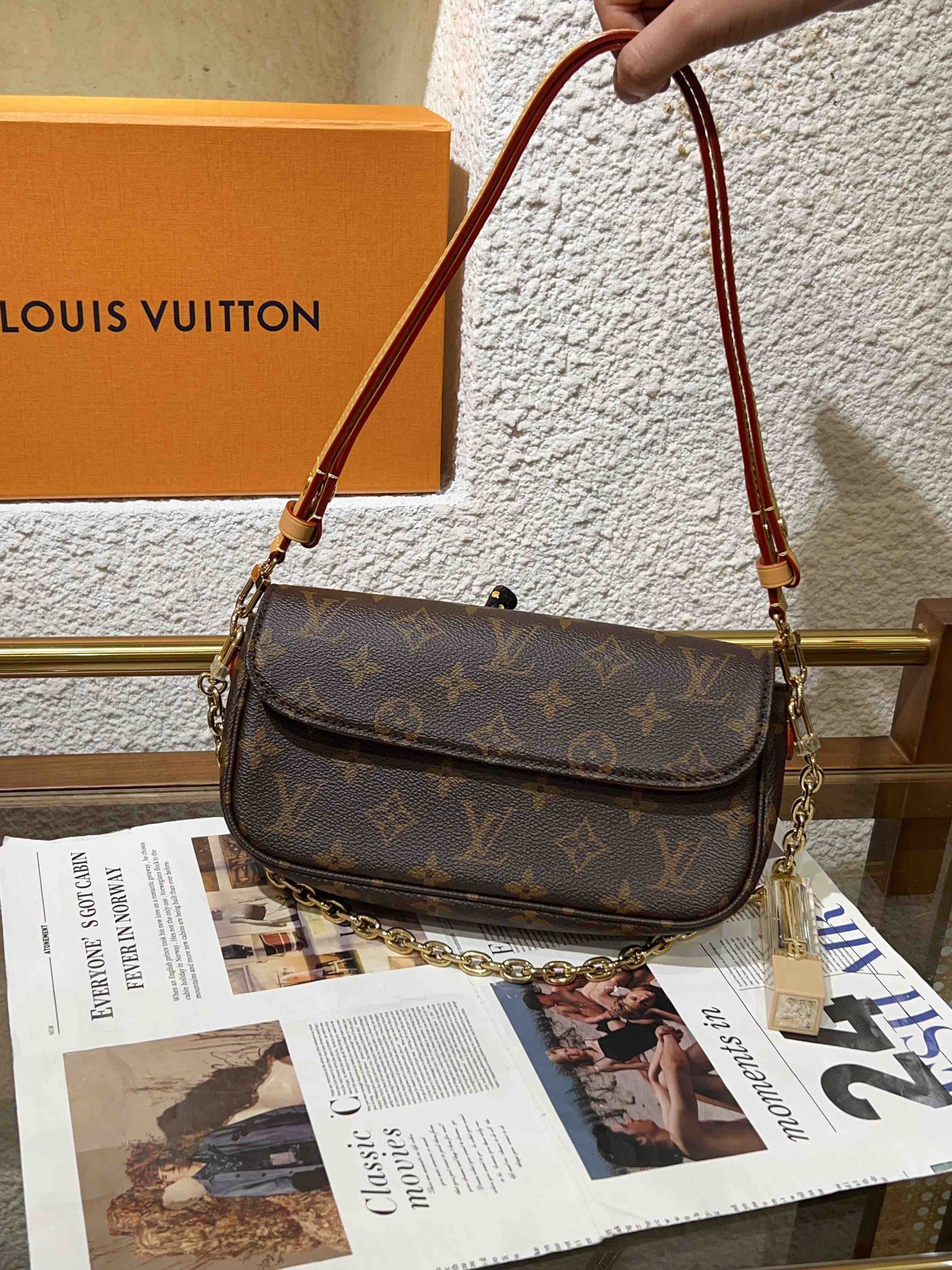 【商品詳情】正品二手 LV Ivy 老花 腋下包☀️ 98新 22×11 配件:肩带 链条 吊牌 防尘袋 盒子 。经典保值🥳