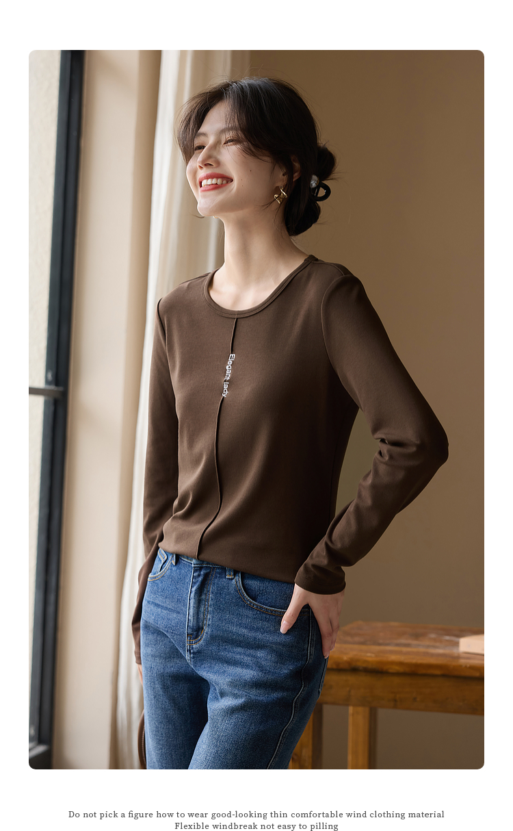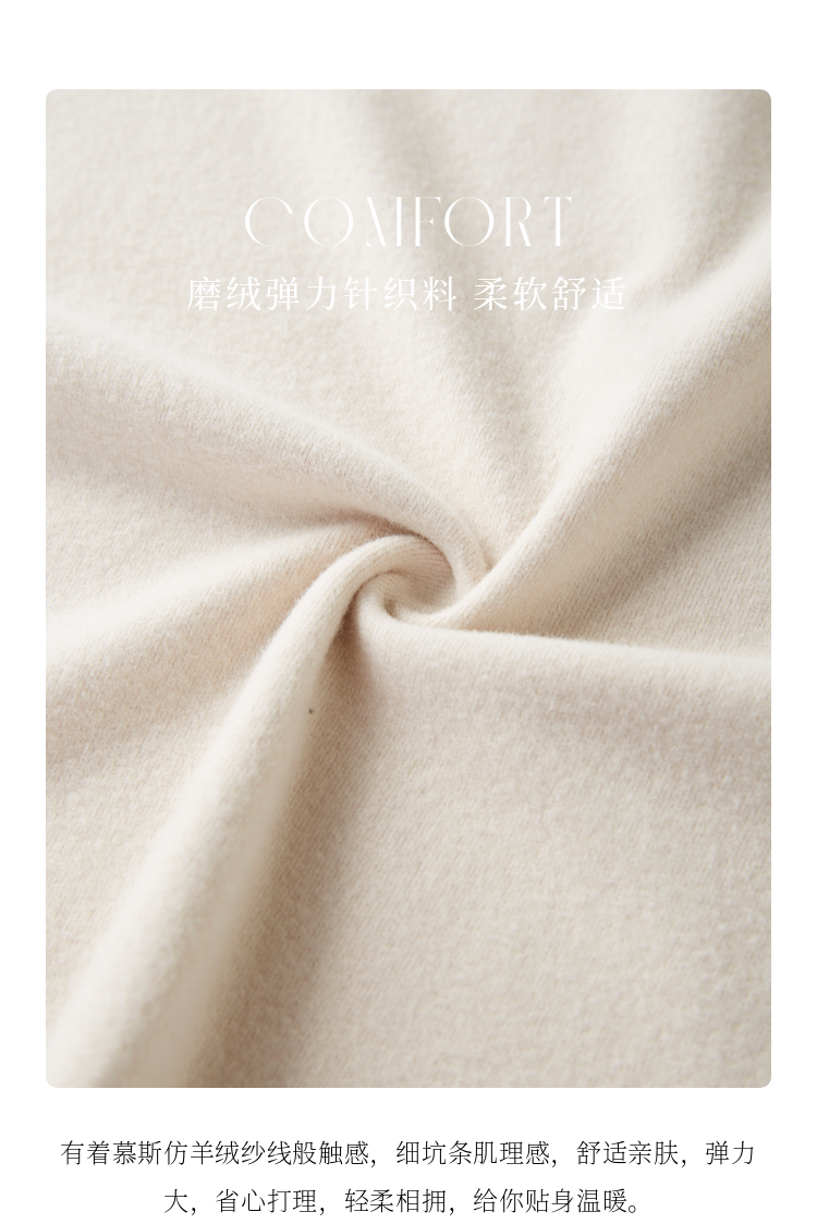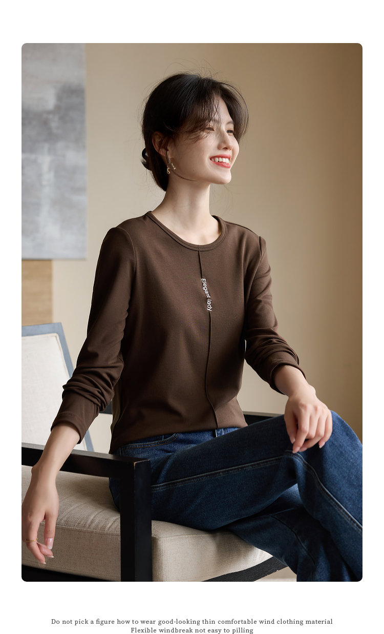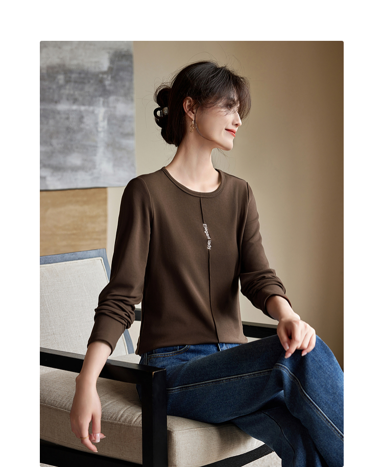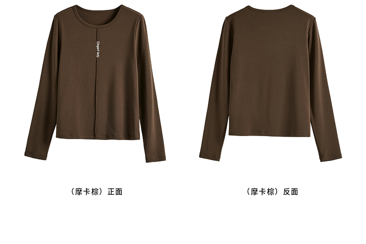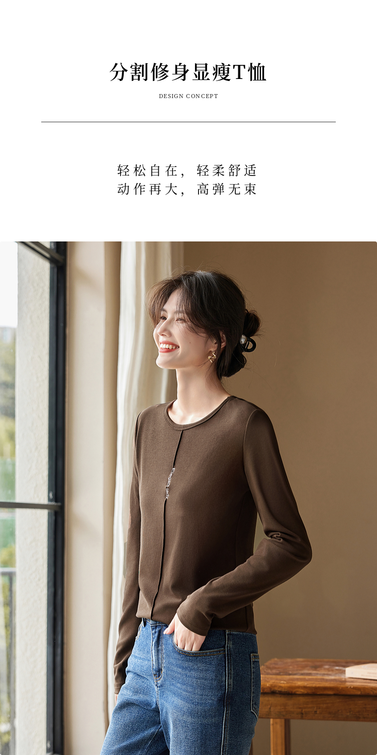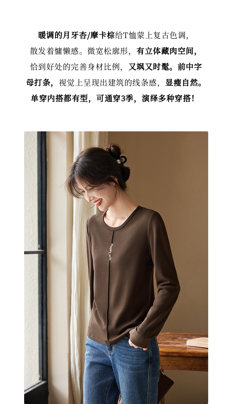 【五折购】熙世界弹力磨绒针织T恤打底衫女秋冬内搭休闲圆领上衣2025年新款