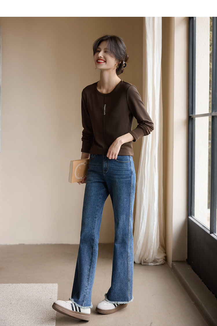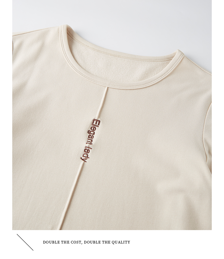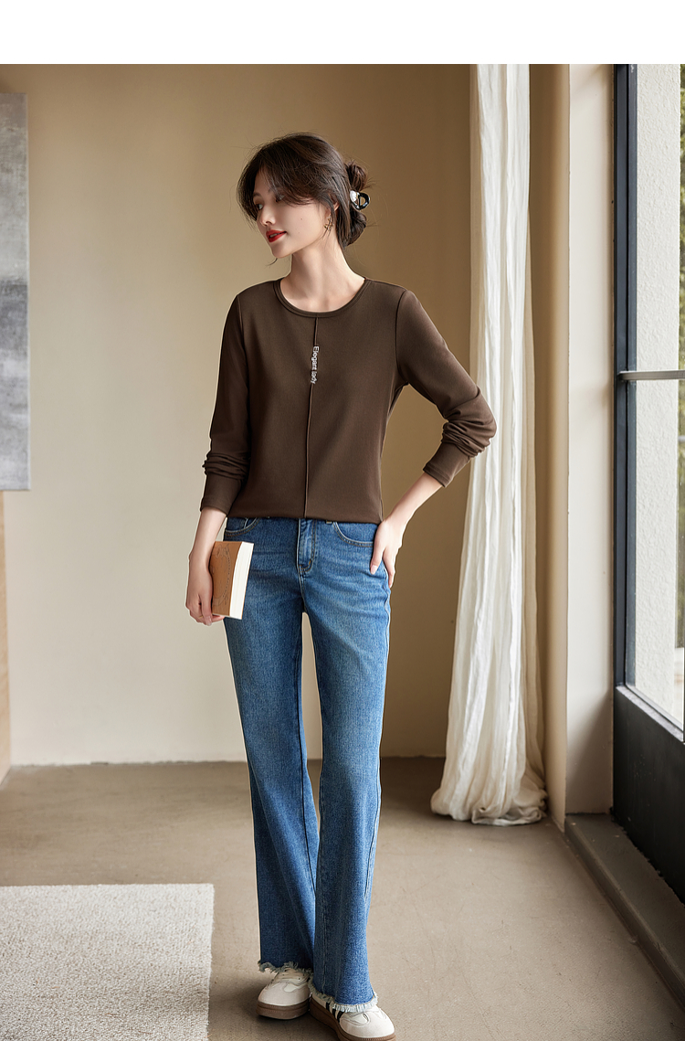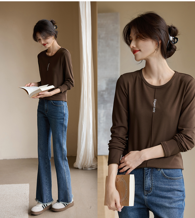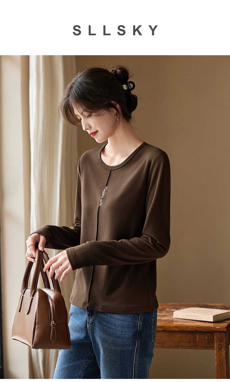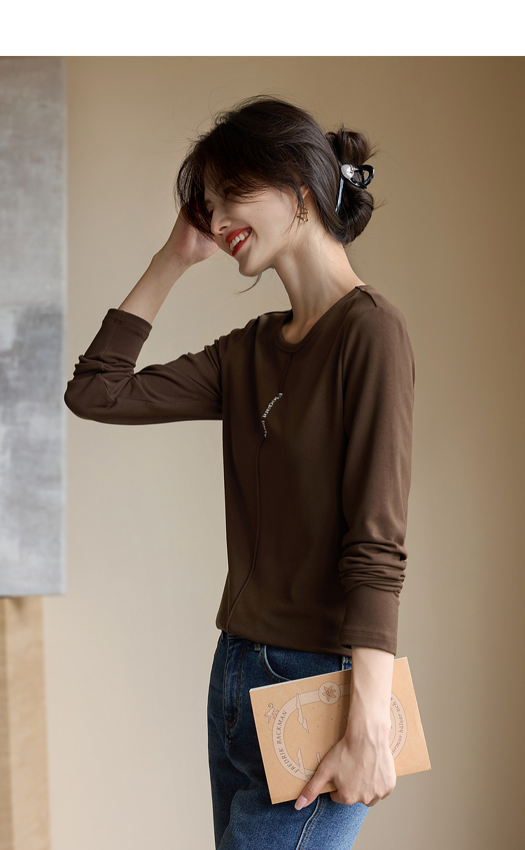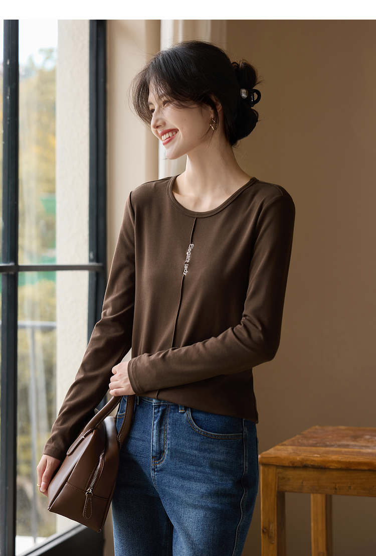 【五折购】熙世界弹力磨绒针织T恤打底衫女秋冬内搭休闲圆领上衣2025年新款