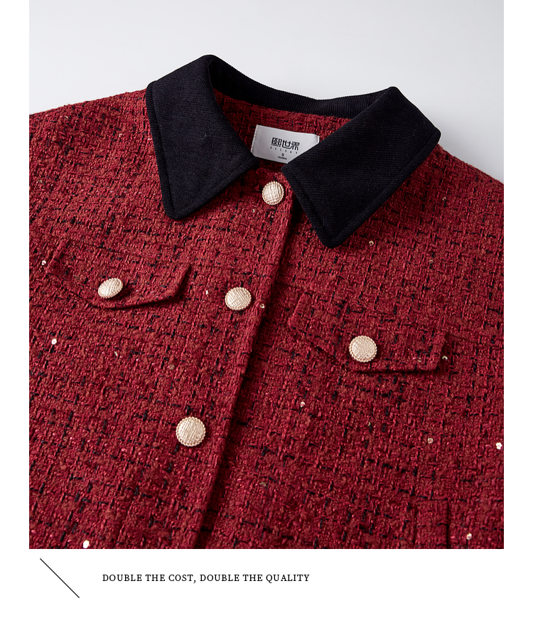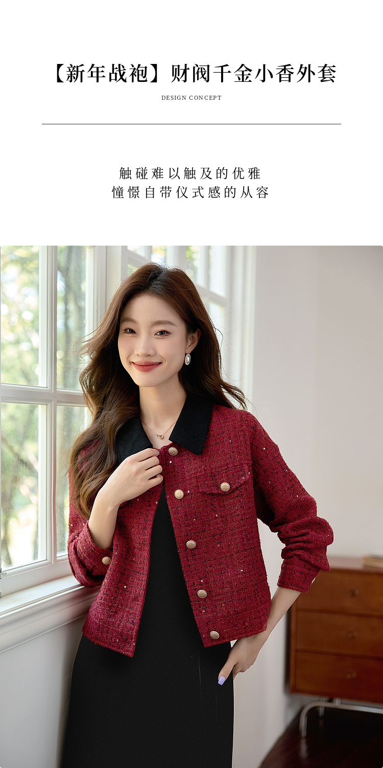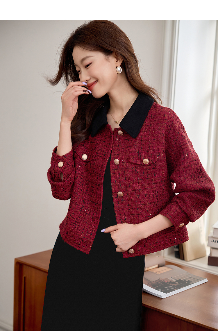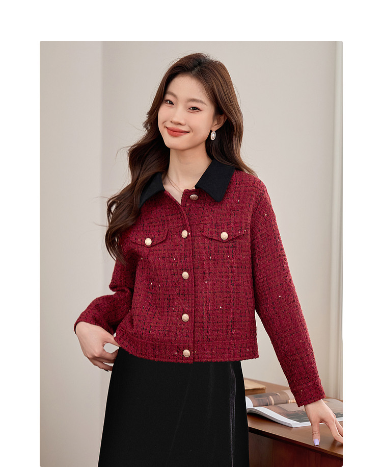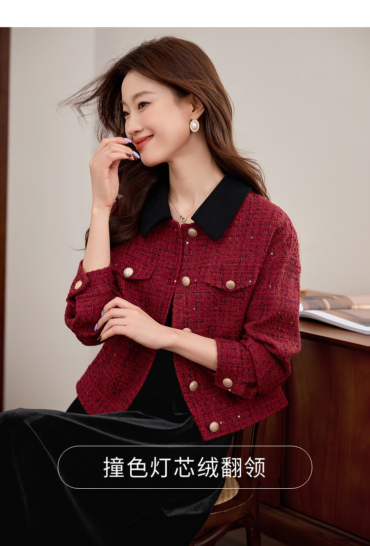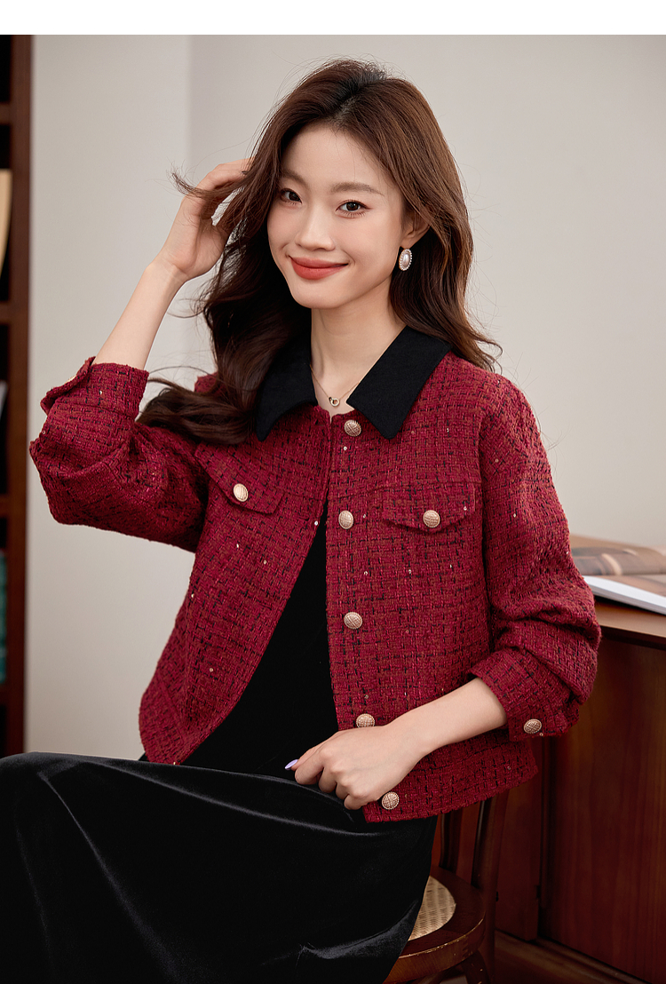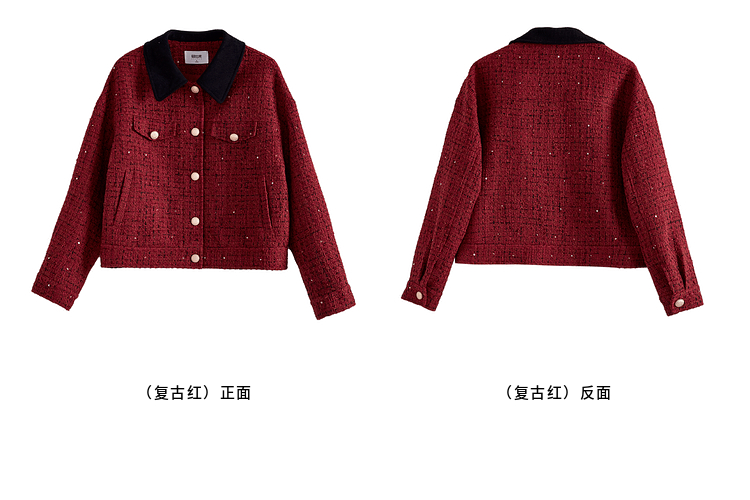 【年货节】熙世界小香风复古红色外套秋冬2025新款小个子短款撞色翻领夹克