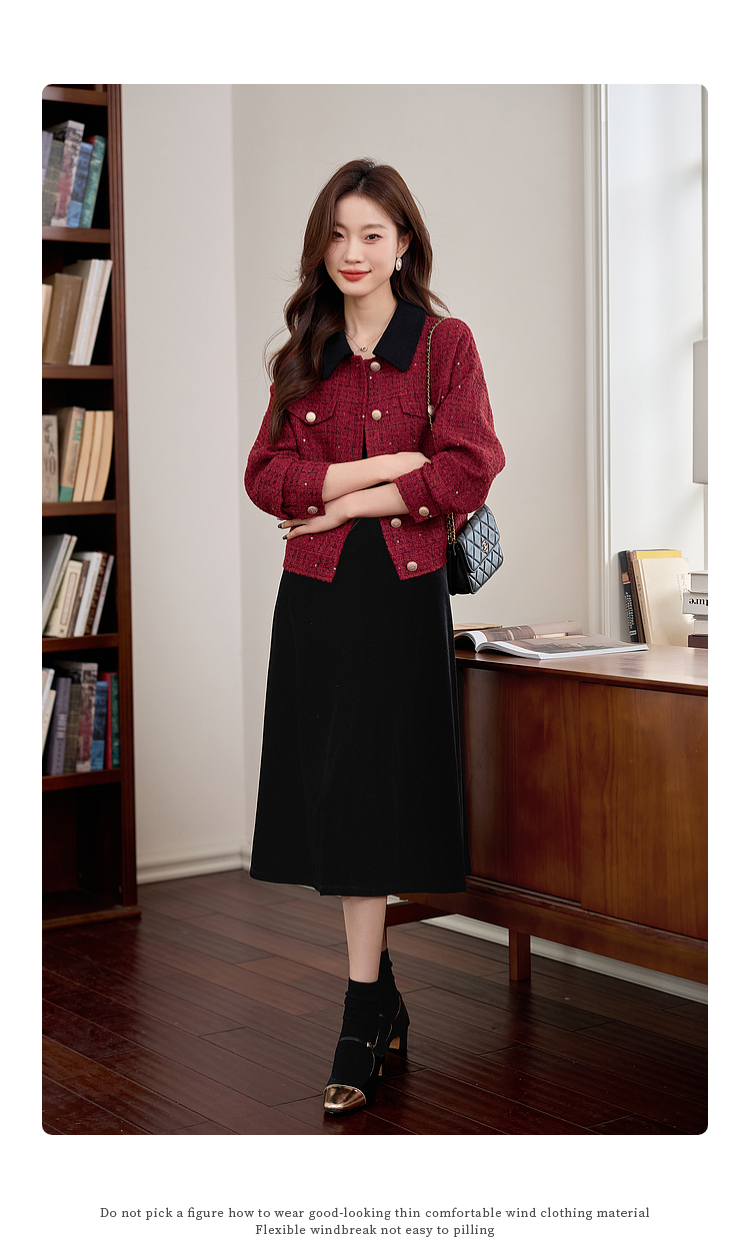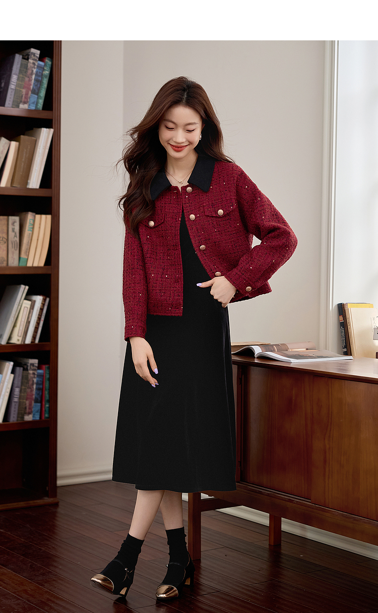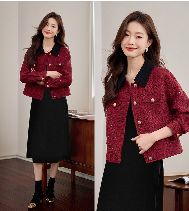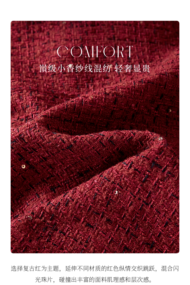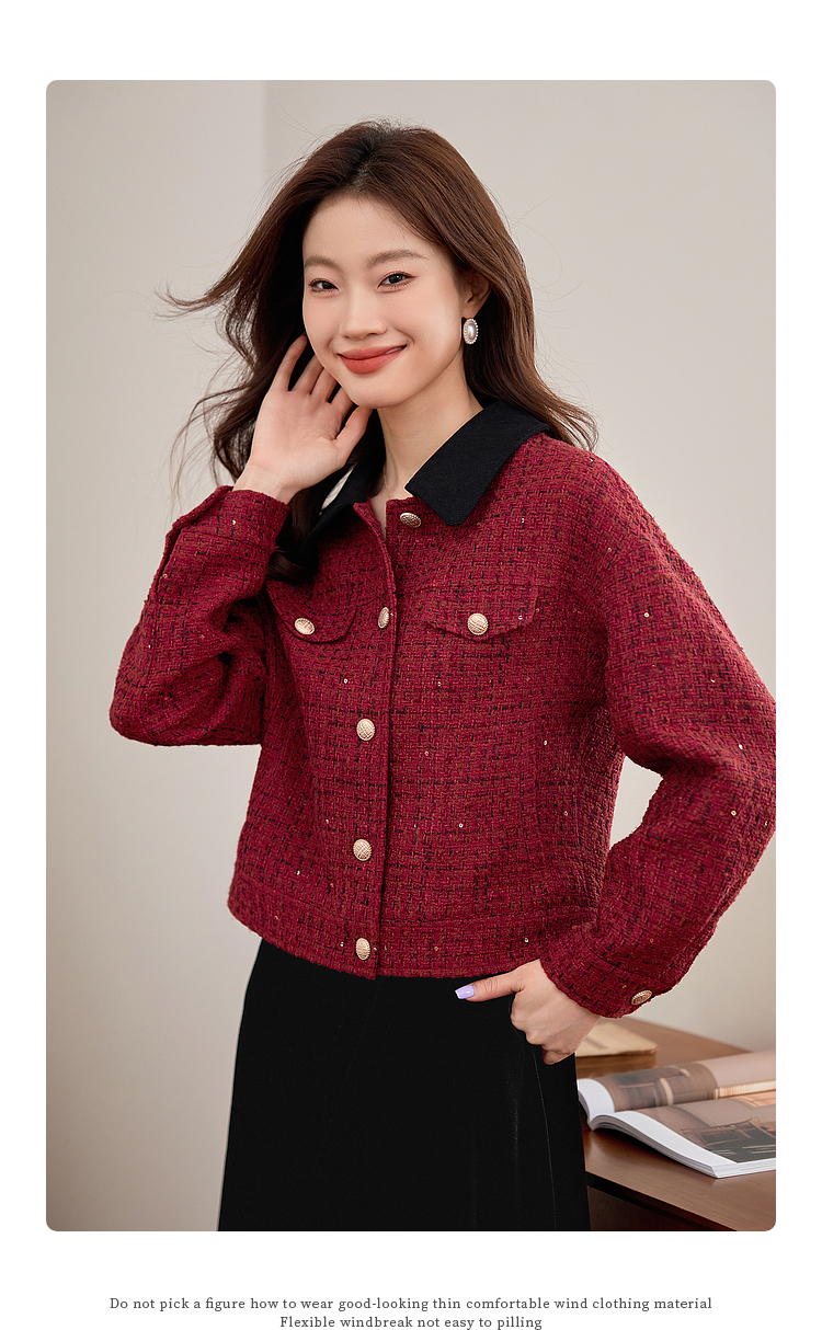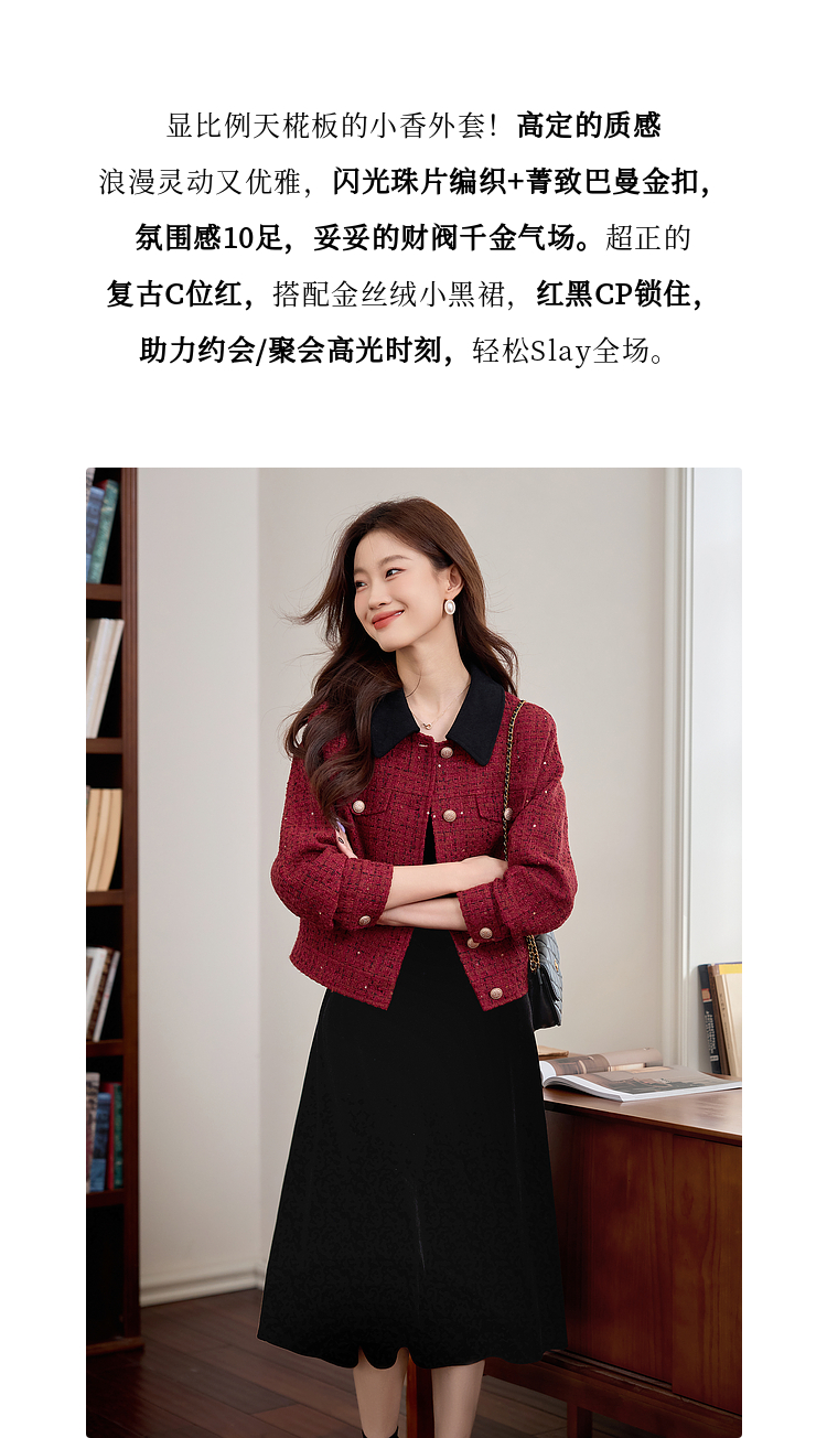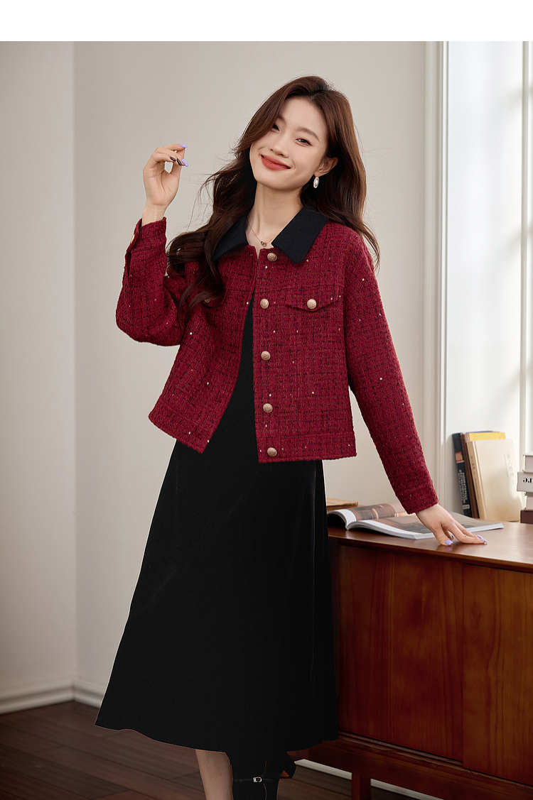【年货节】熙世界小香风复古红色外套秋冬2025新款小个子短款撞色翻领夹克