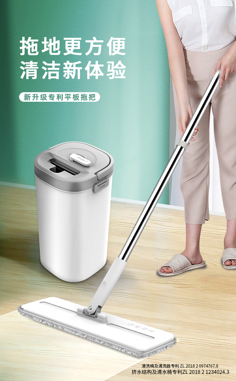 好媳妇免手洗平板拖把家用懒人木地板拖布刮刮乐拖把挤水干湿两用