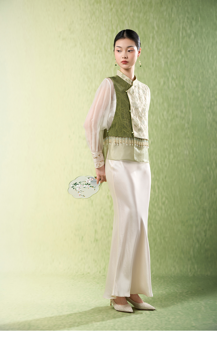 新中式国风桑蚕丝高端气质显瘦修身女装竹斋眠听雨马甲