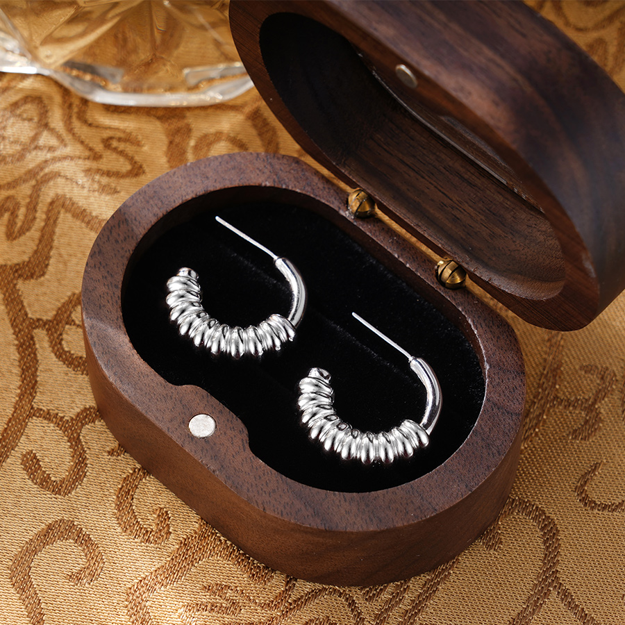 子佩集S925银【波动之光】耳钉纯银【AJ00646】原创2半环扣环耳圈2501