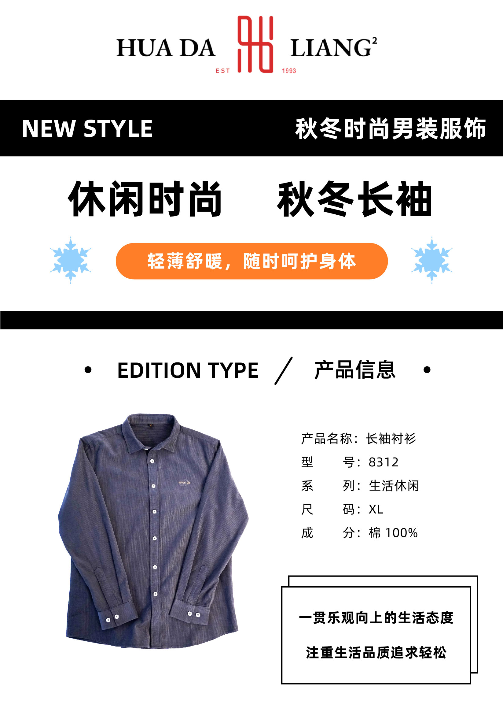 男装23秋季新品休闲反领长袖衬衫2219-8312▲