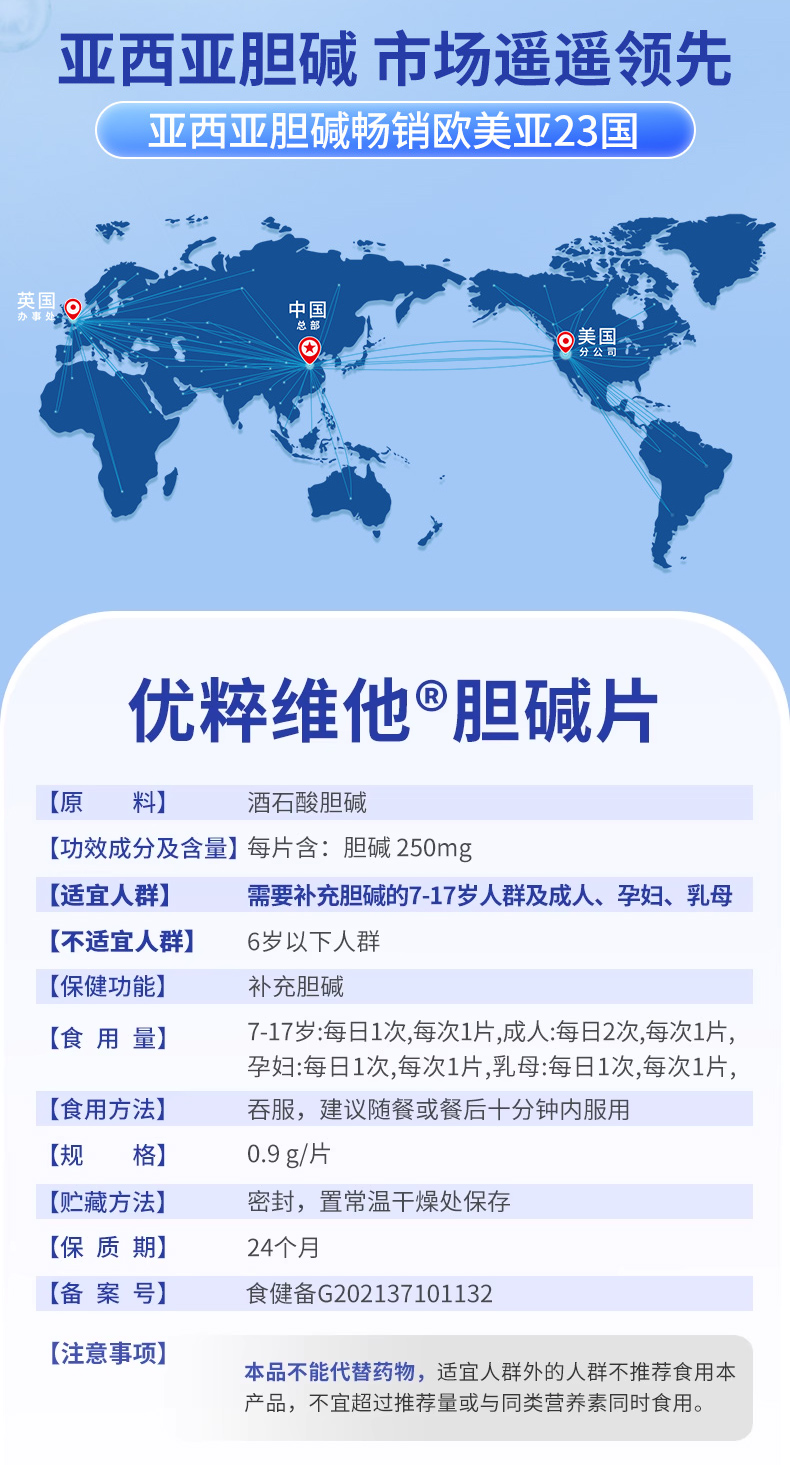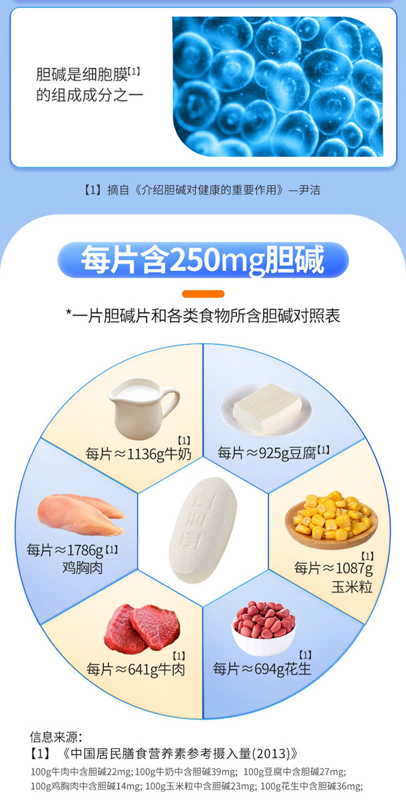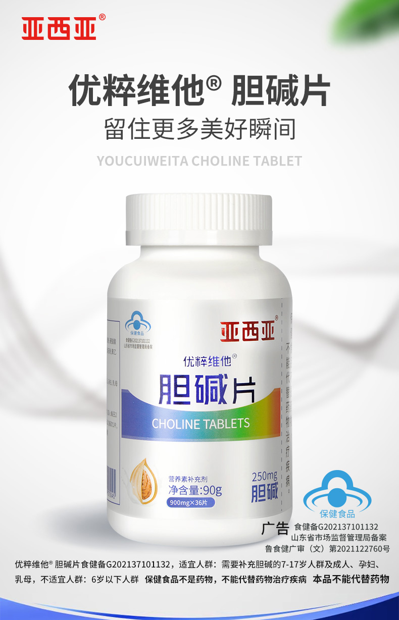 【买2送1再减10元】亚西亚优粹维他胆碱片 蓝帽子食品 补充营养素 36片/盒