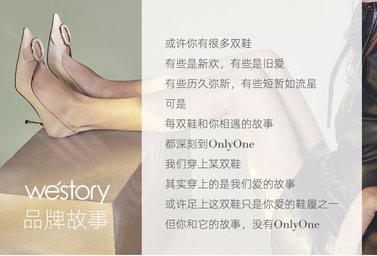 westory23年春新款时尚尖头方形水钻扣高跟鞋细跟女气质名媛55381