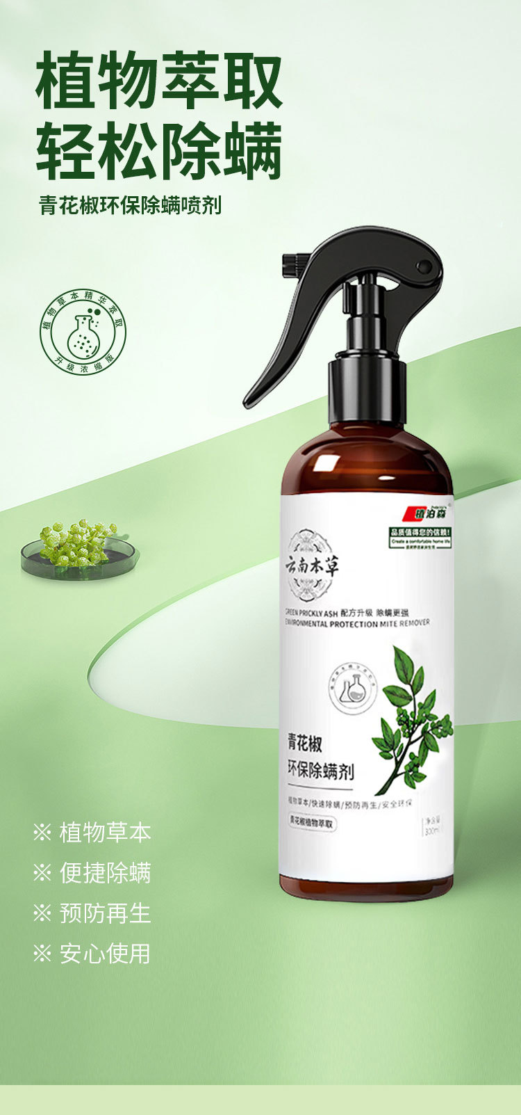 【喷一喷轻松除螨】环保除螨喷剂 环保配方 天然植物萃取 去螨虫祛螨喷雾 驱虫杀蟑螂 家用床上卧室 母婴 可用 300ml/瓶
