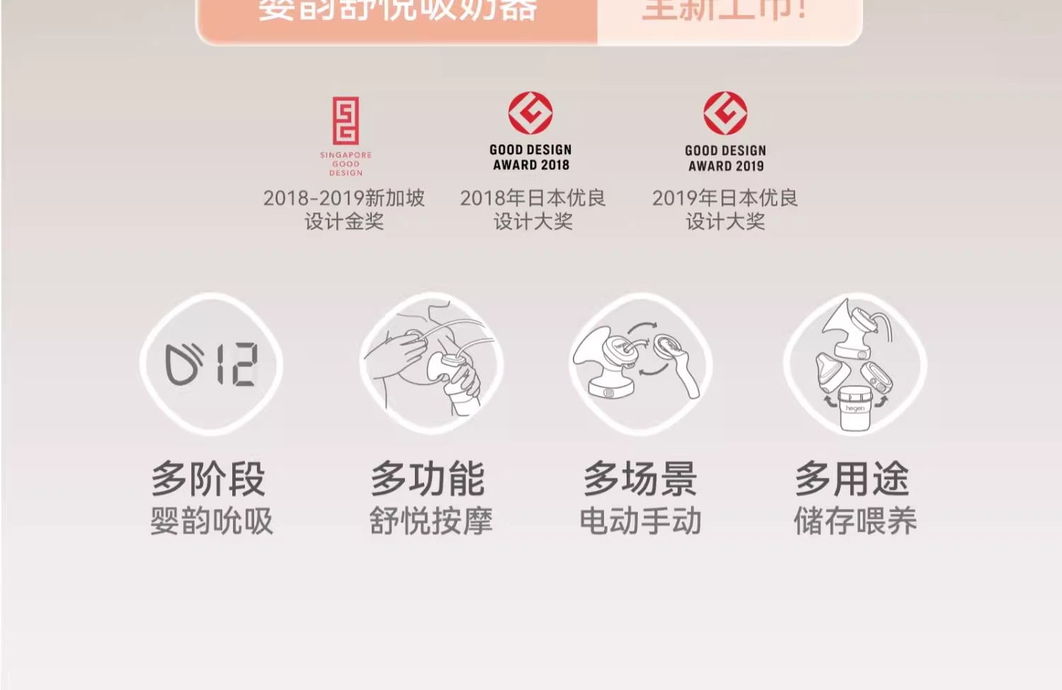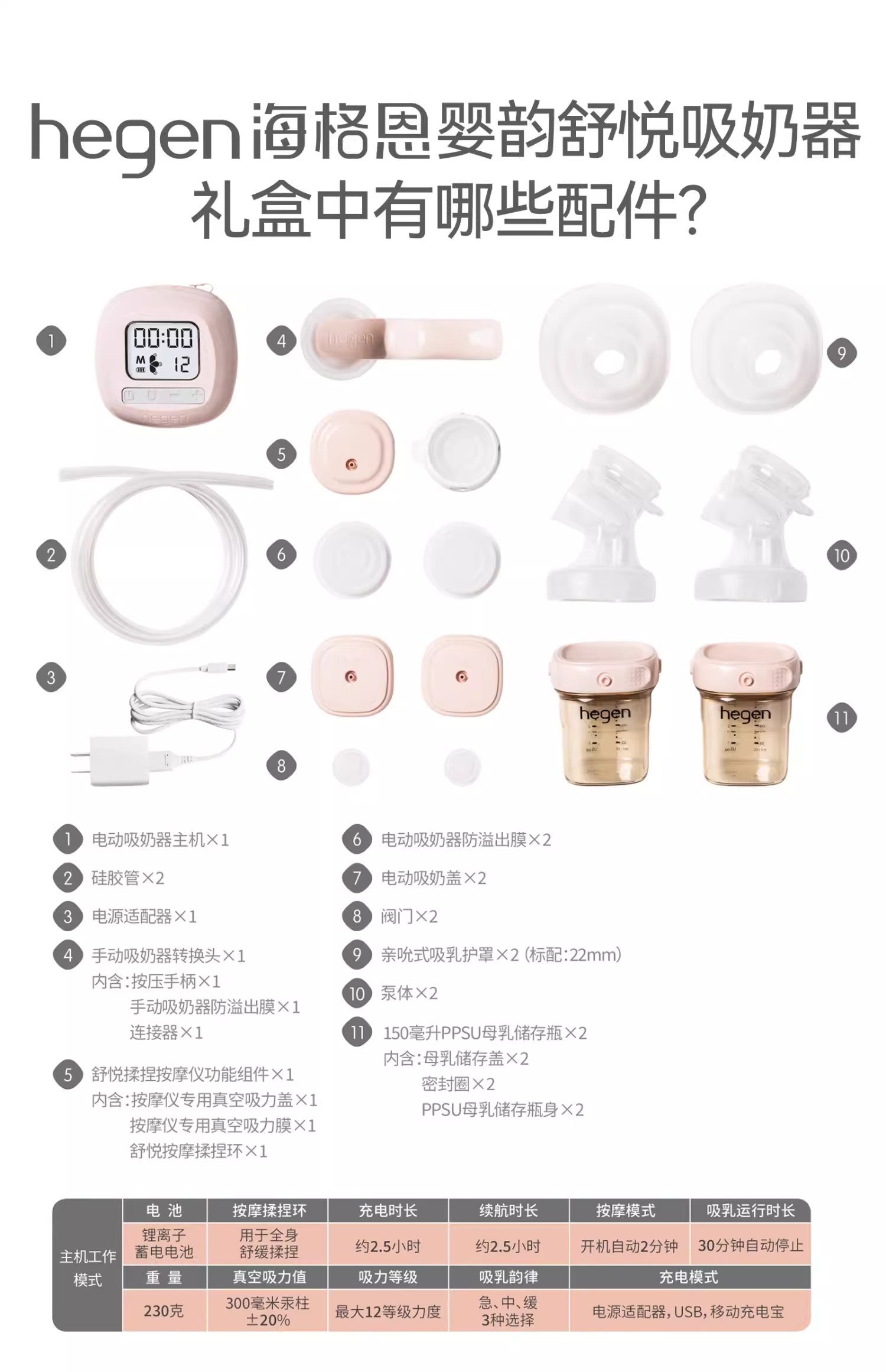 新品 | 新加坡Hegen 婴韵舒悦电动吸奶器(含母乳舒缓仪)| 双边集奶手动便携自动静音孕妇配件母乳