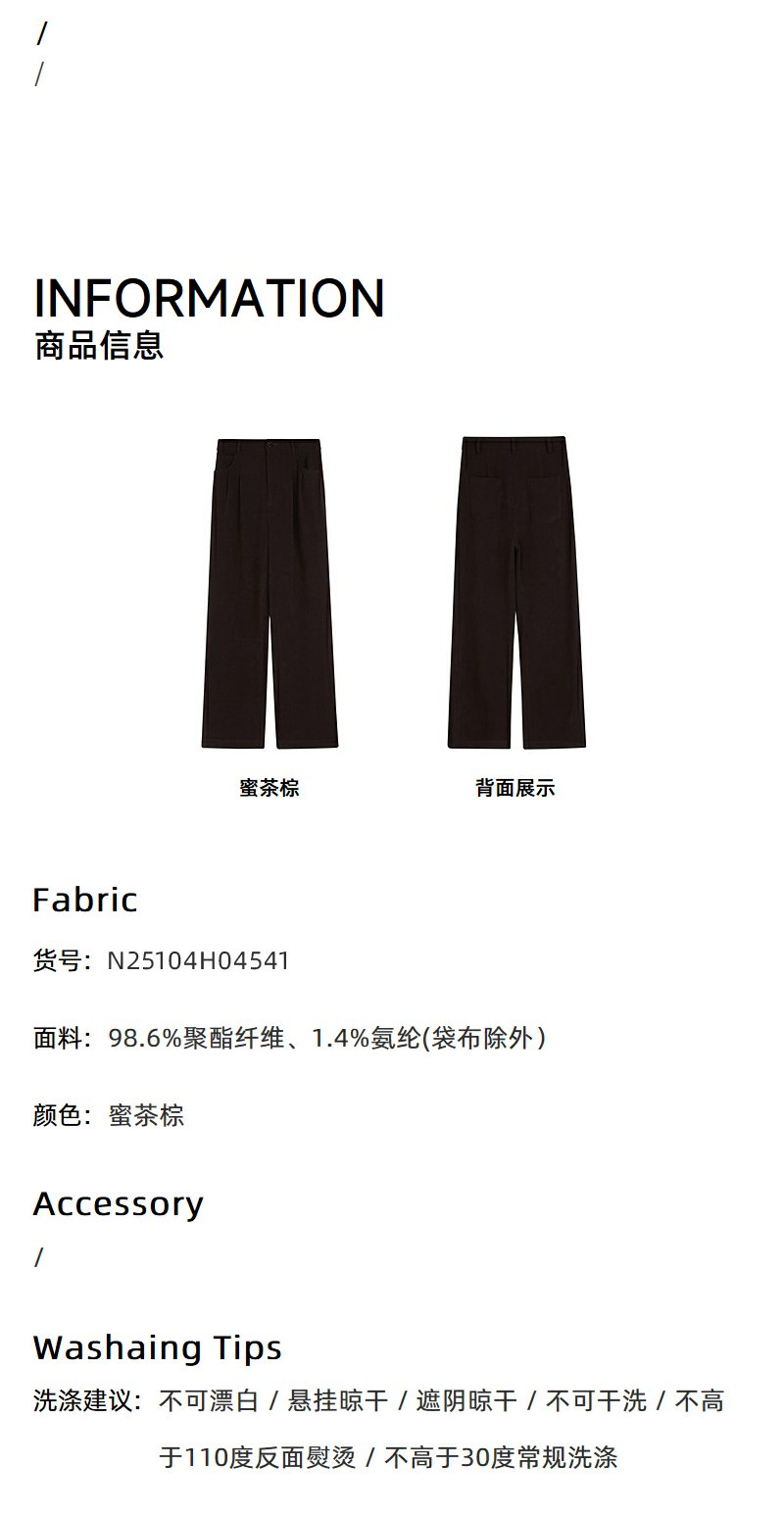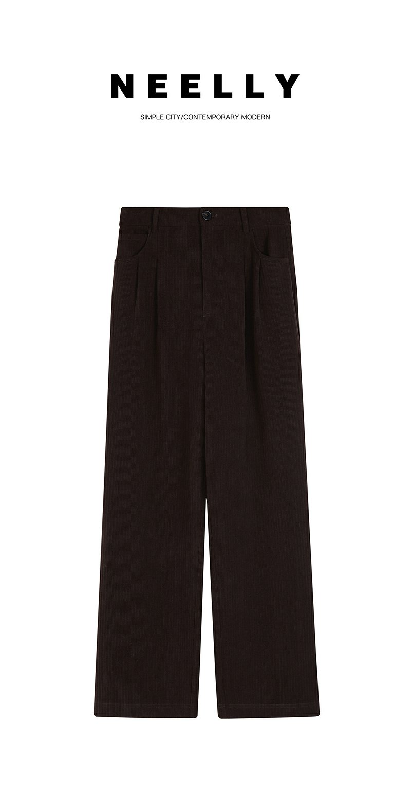 NEELLY纳俪商场同款冬季新款高腰显瘦长裤女纯色简约阔腿休闲裤N25104H04541