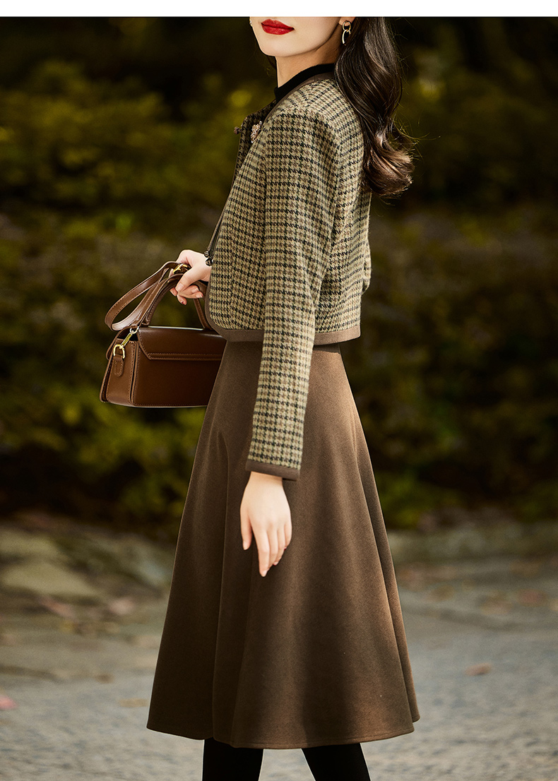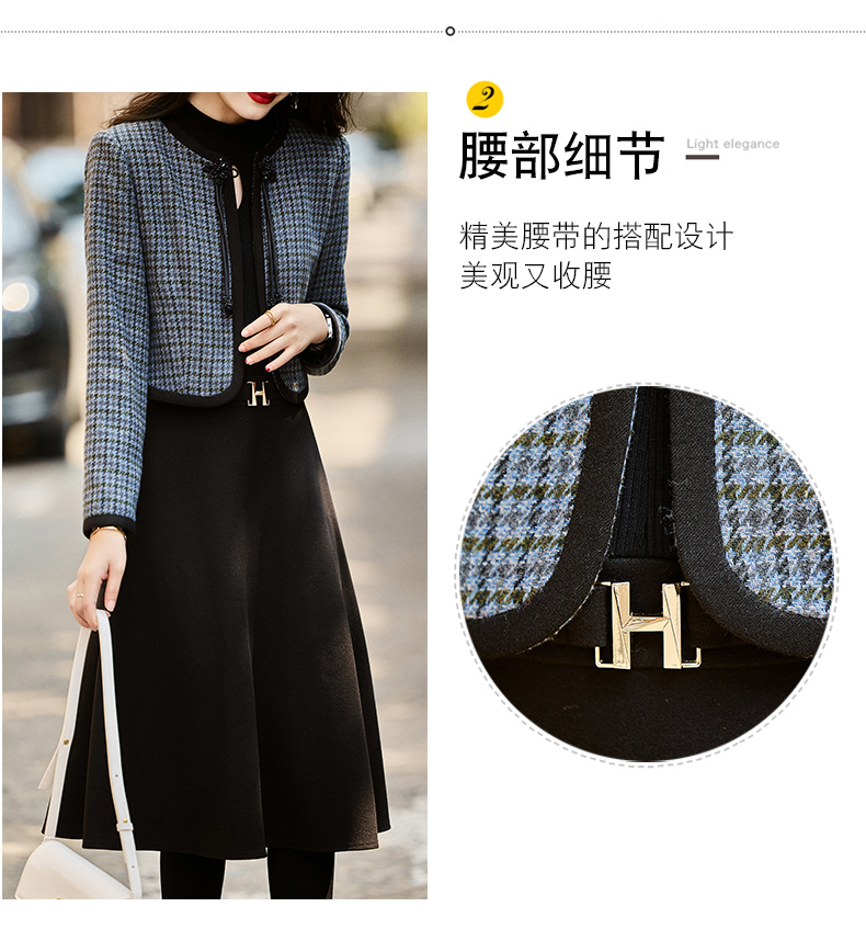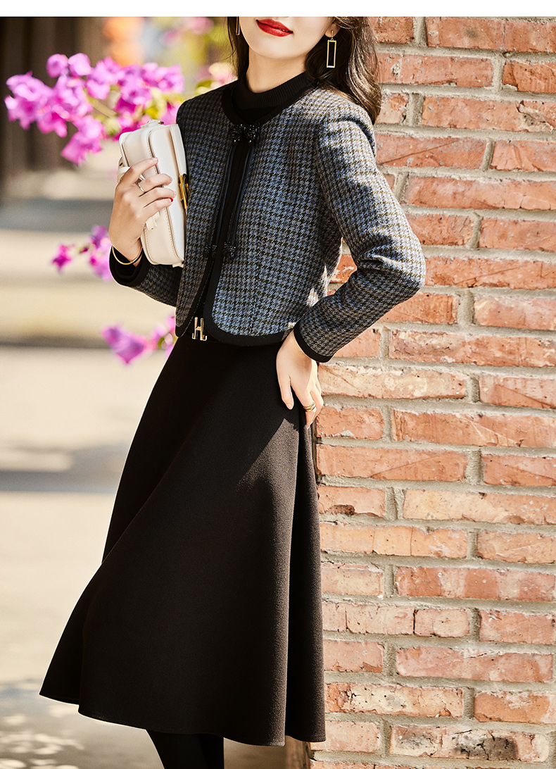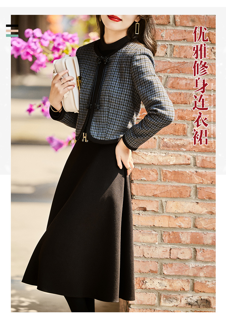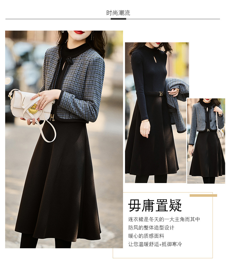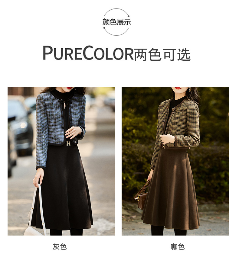 时尚休闲舒适毛呢拼接连衣裙两件套HR-MLJL6912