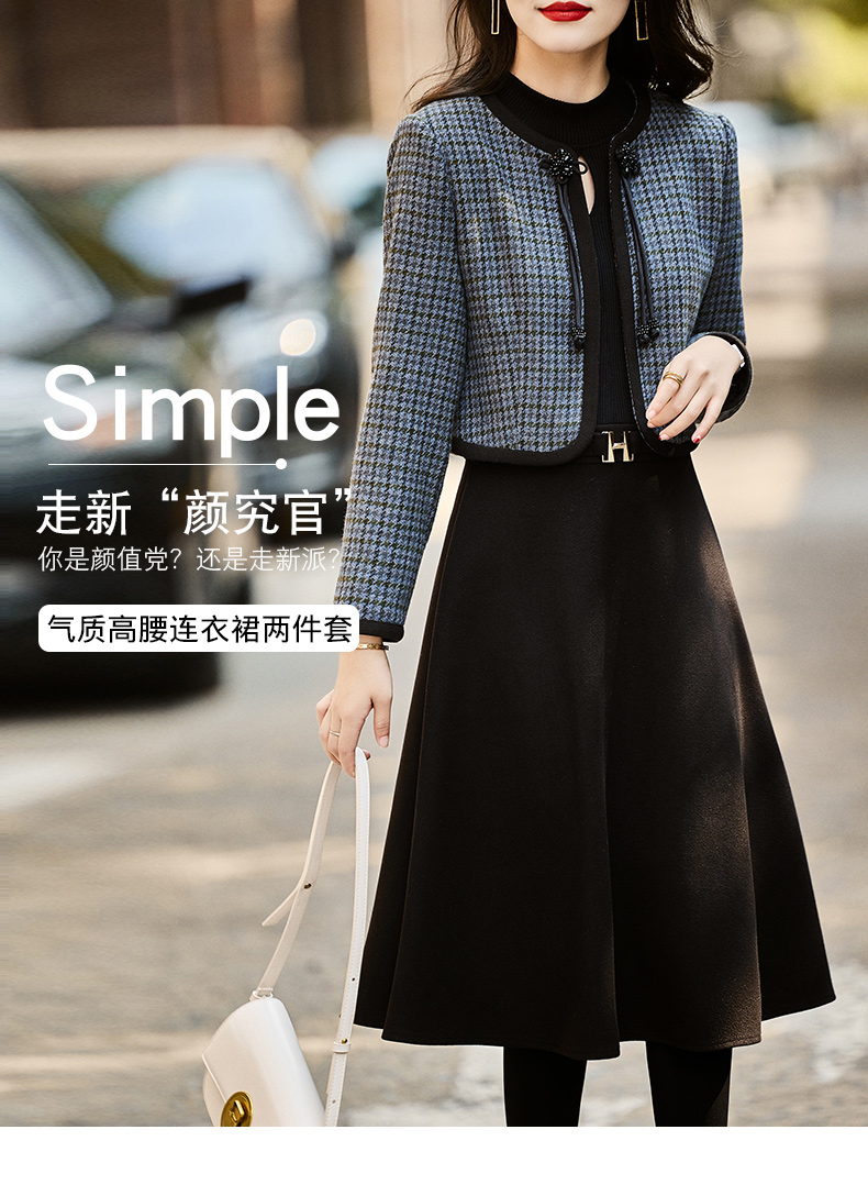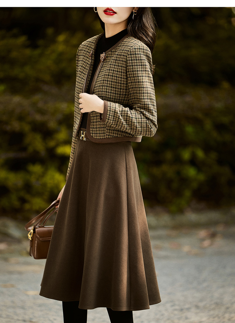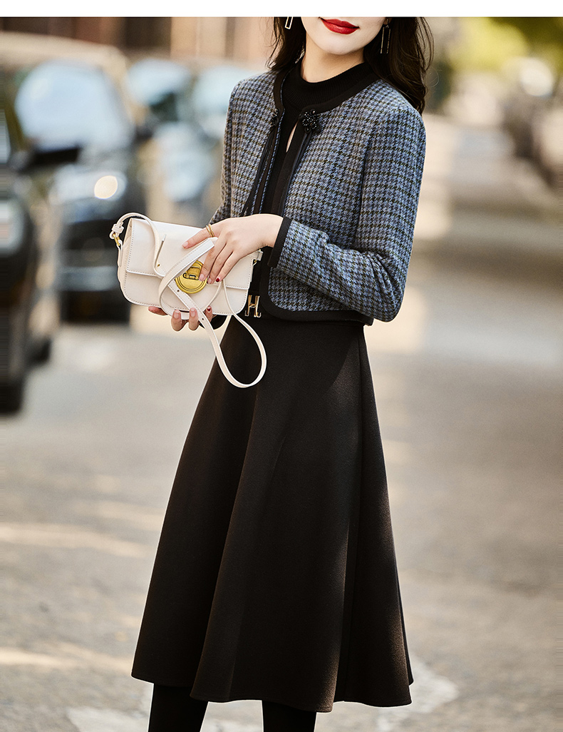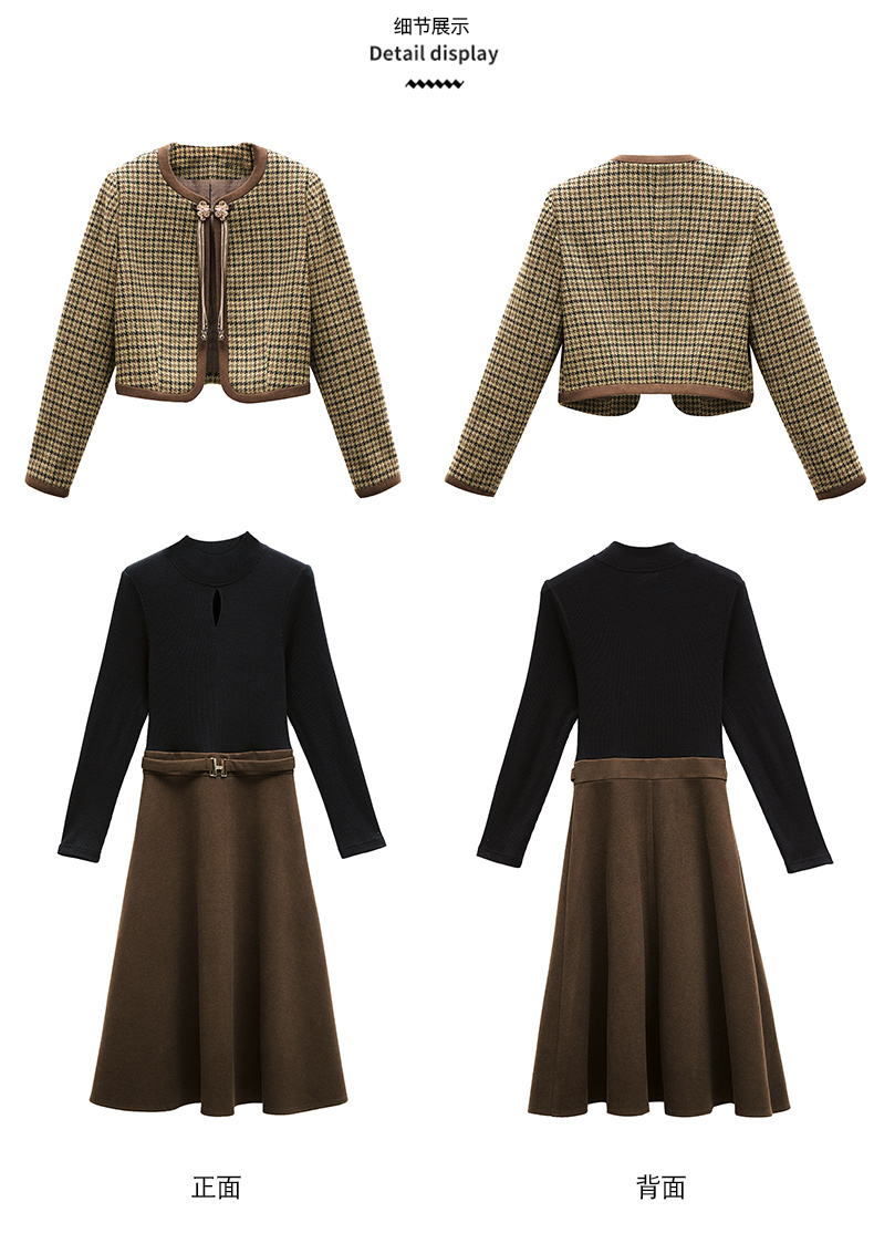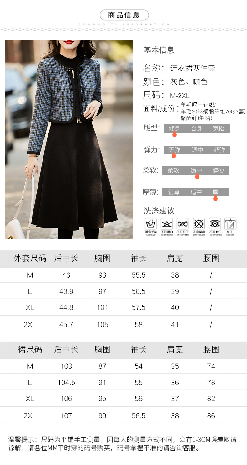 时尚休闲舒适毛呢拼接连衣裙两件套HR-MLJL6912